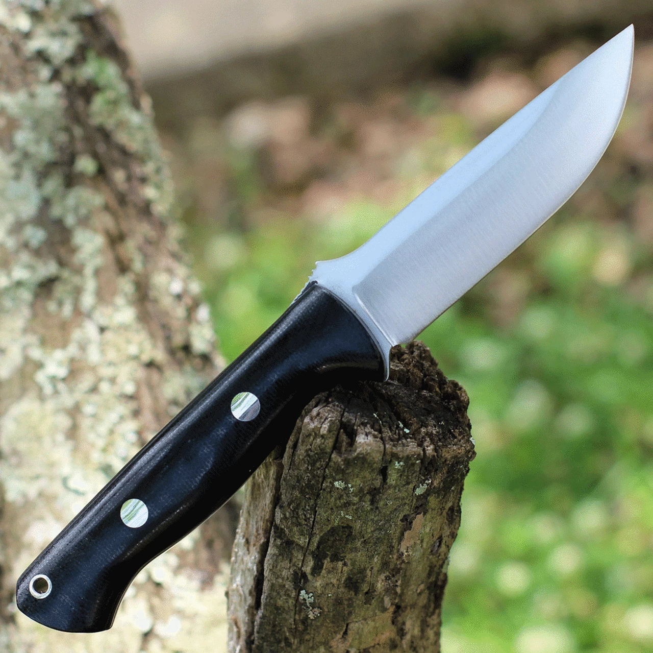 Bark River Knives Bravo 1 (07-122M-BC) – 4.2″ CPM-3V Satin Drop Point Fixed Blade, Black Canvas Micarta Handle