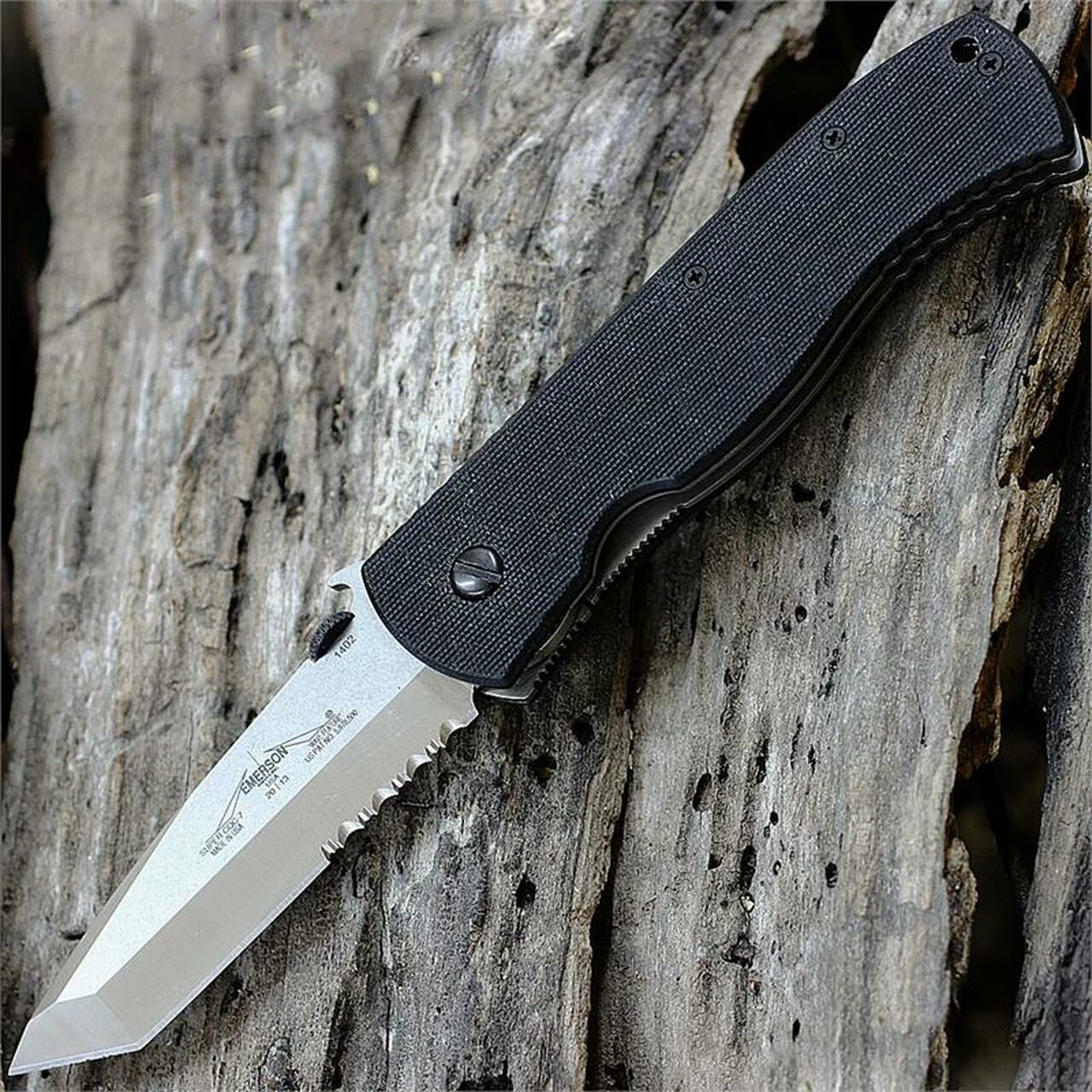 Emerson Super CQC-7BW Wave, Combo Tanto Stonewash Blade, Black G-10 Handle