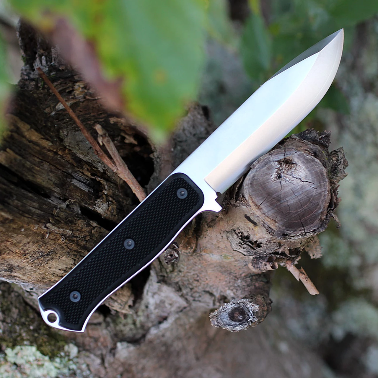 As an accessory, the knife sheath will be available with a stainless clip that allows you to easily carry the knife on your waist belt. The advantages are several – including that you can easily remove and stow your knife. When belt-mounted, the knife will hang vertically, a few centimeters lower than the belt, allowing it to be accessed even if wearing a backpack or long jacket. The articulation in this sheath system allows the wearer to move the knife and sheath to one side when seated or driving a vehicle.