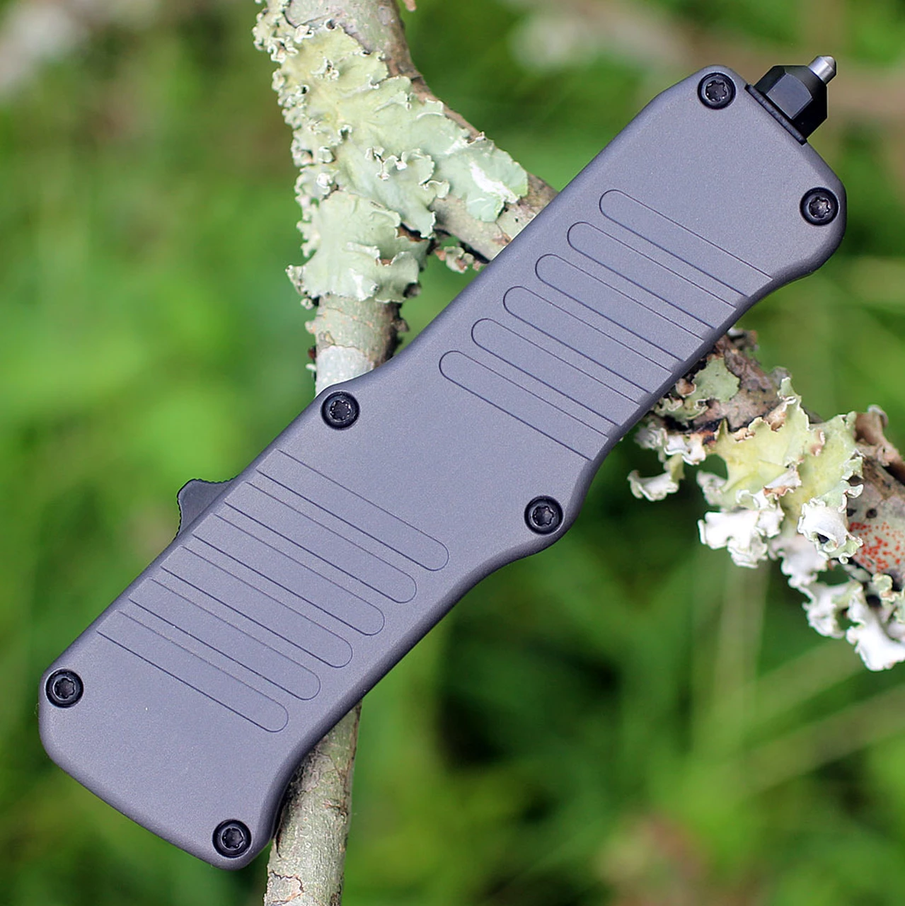 HK Mini Incursion OTF Automatic, 2.95″ Black PVD Tanto Blade, Matte Grey Aluminum Frame