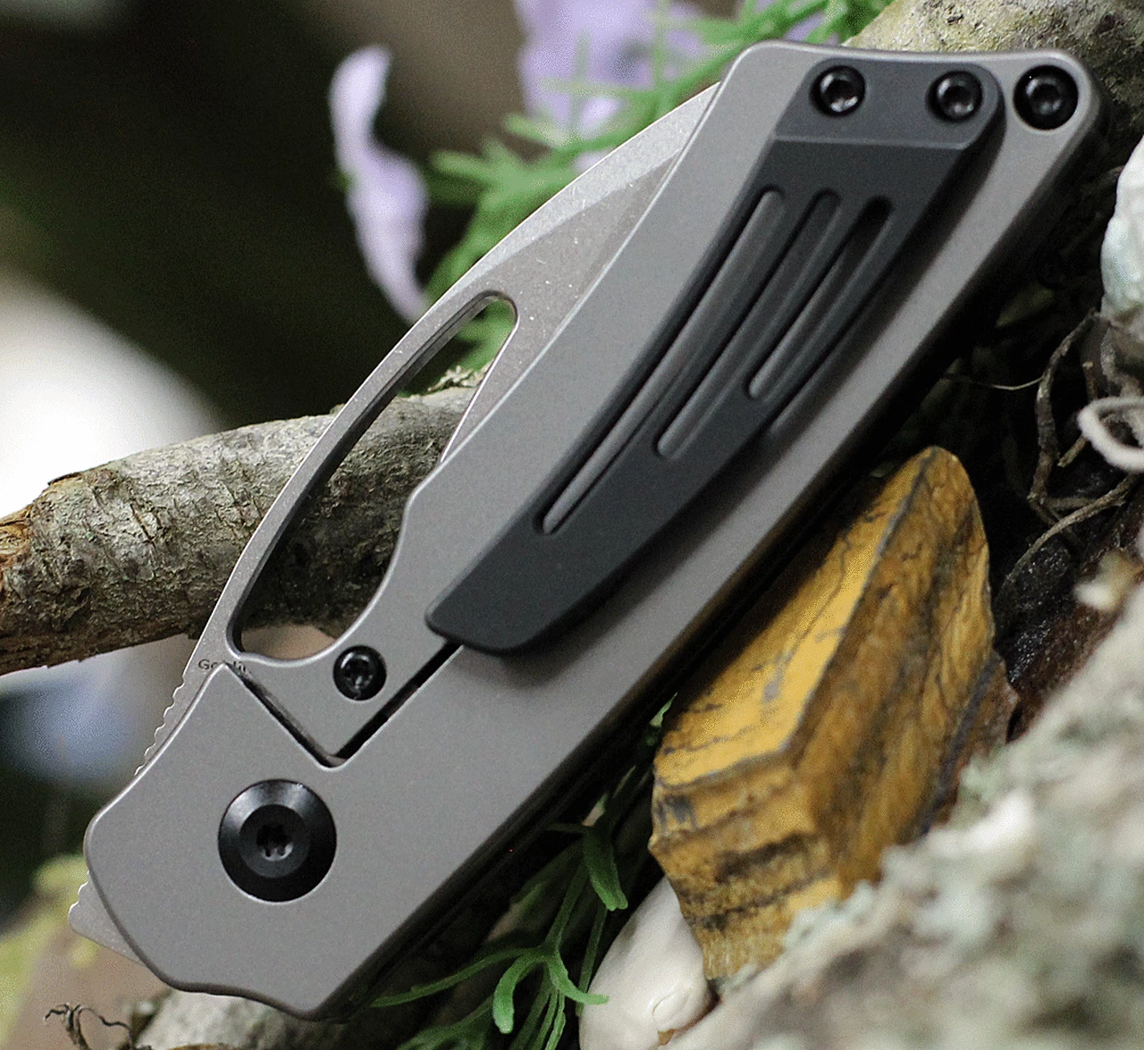 - Compact and ergonomic dark bronze anodized titanium handle for a smooth gripping surface that is comfortable in the pocket or hand.
