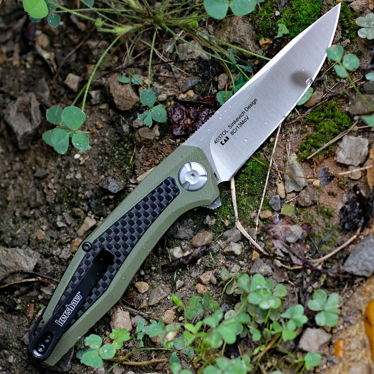 Kershaw Atmos Olive 4037OL, 3″ 8Cr13MoV Satin Flipper Blade, Olive G10 Handle