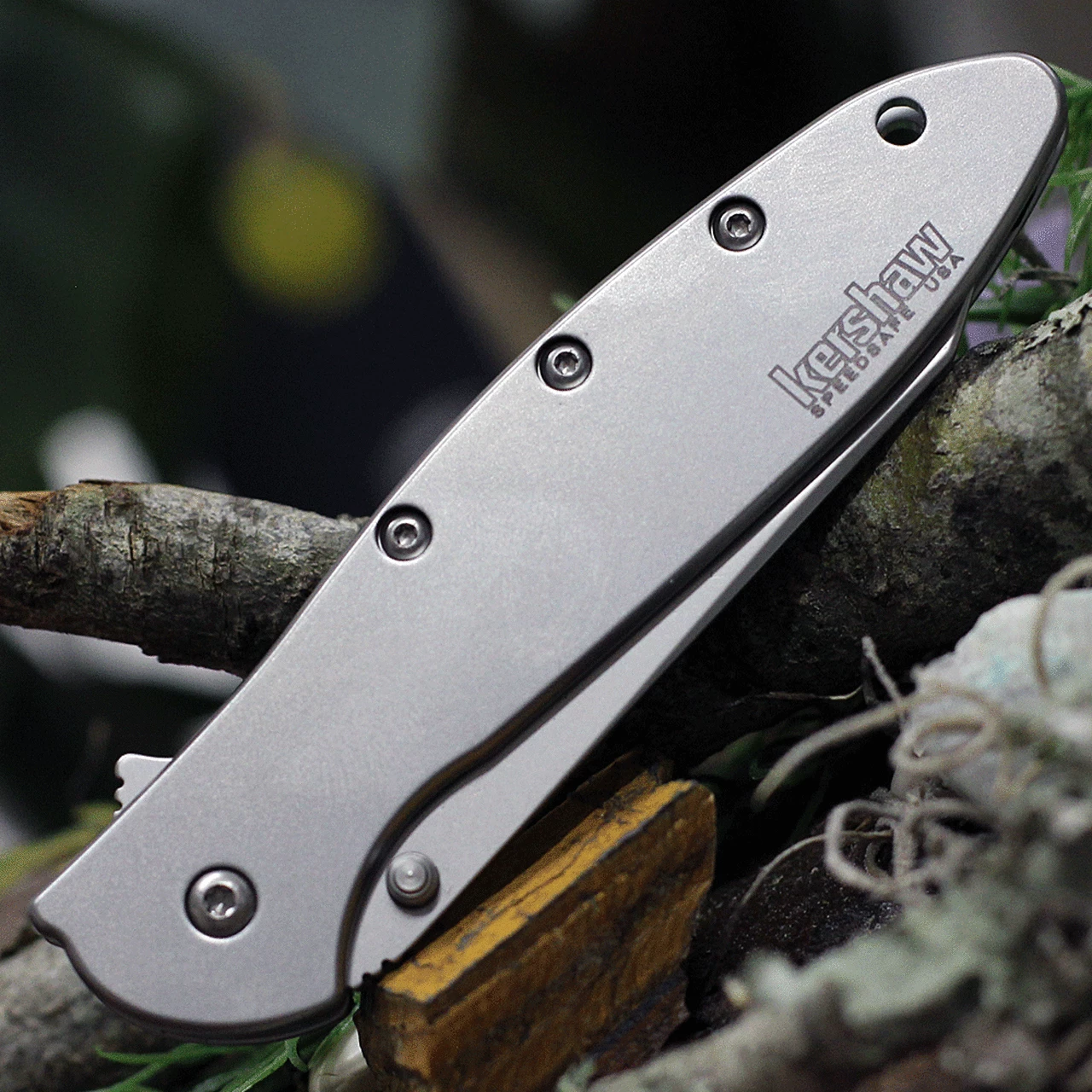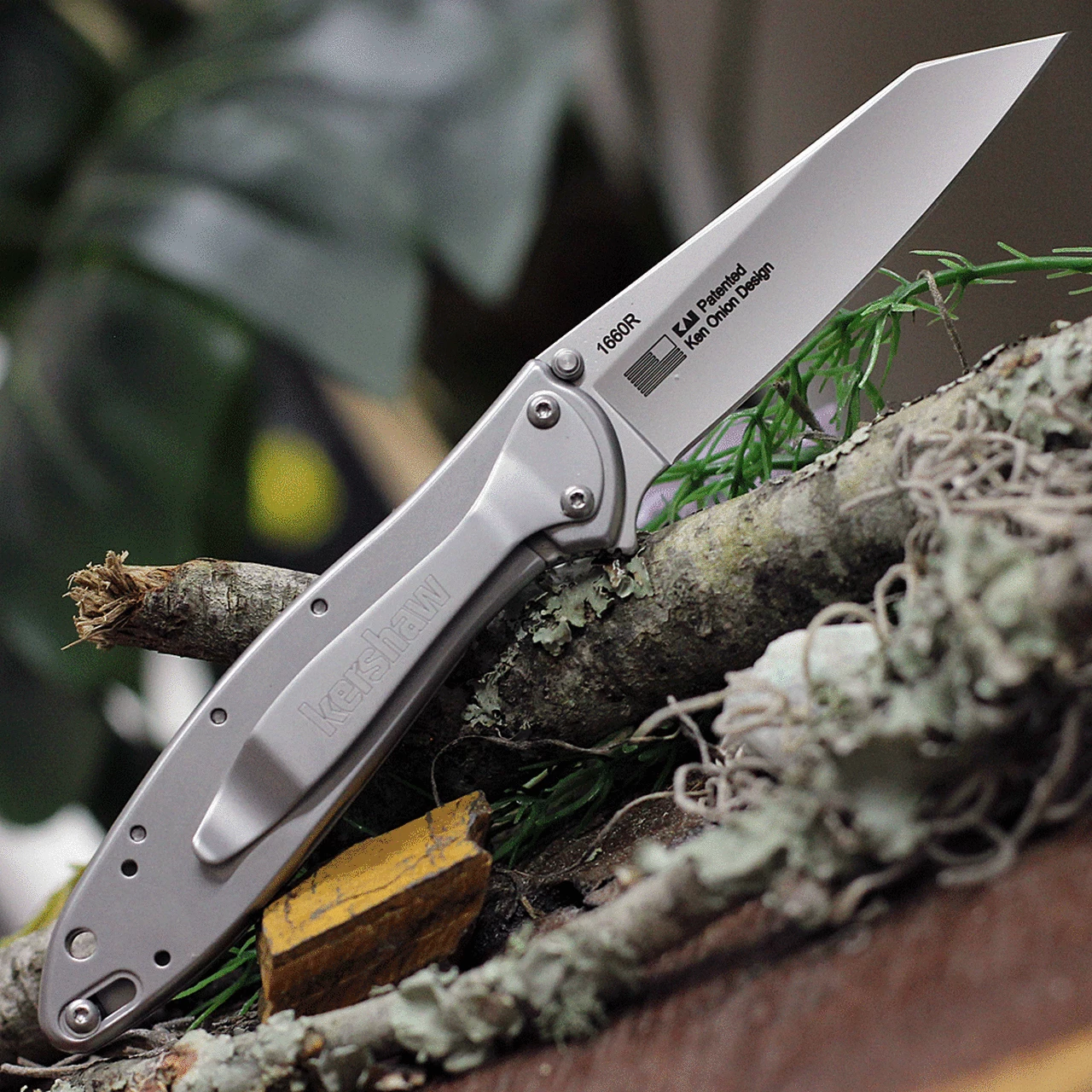 Kershaw Random Leek 1660R, 3″ Sandvik 14C28N Bead Blasted Reverse Tanto Blade, Stainless Steel Handle