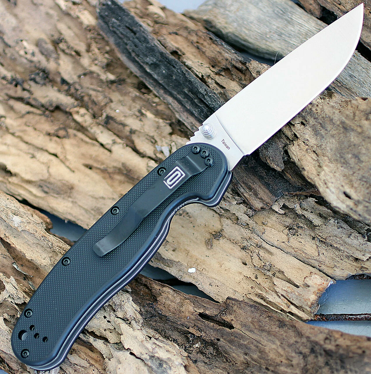 Ontario RAT Model 1 Folder, 3.5″ D2 Blade Steel, Black Handle