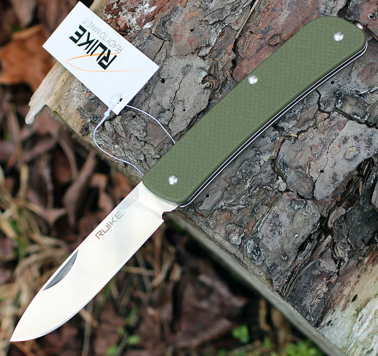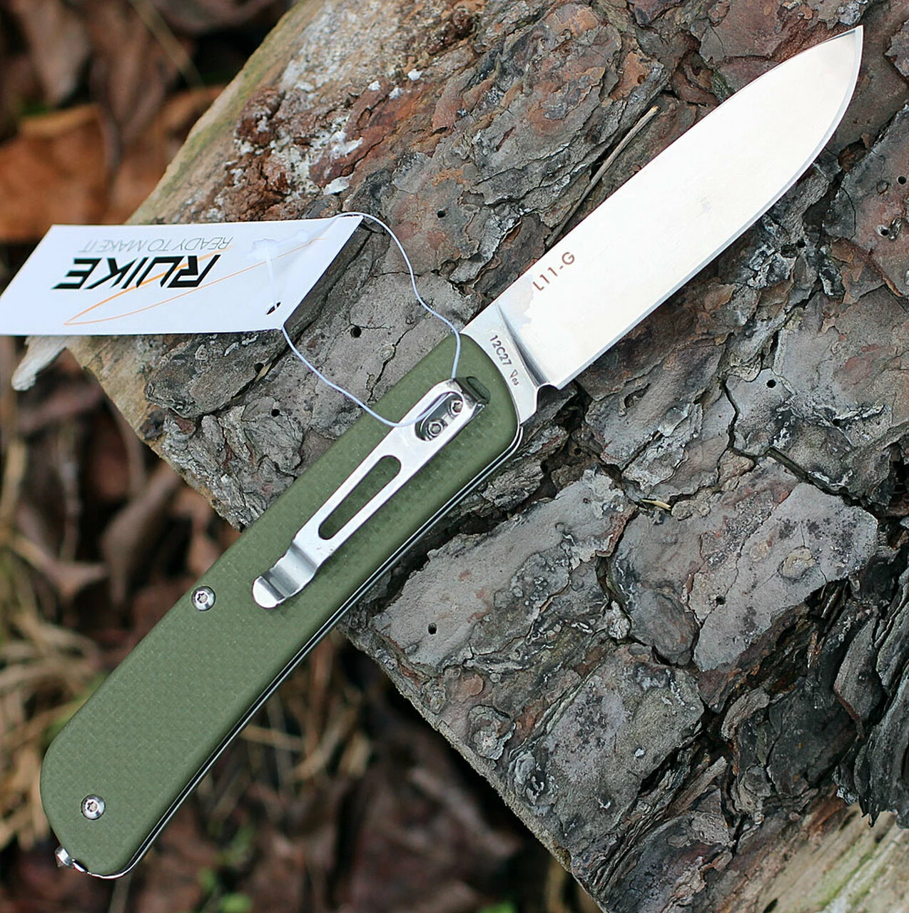 Ruike Criterion Collection L11G, 3.35″ 12C27 Plain Blade, Green G-10 Handle