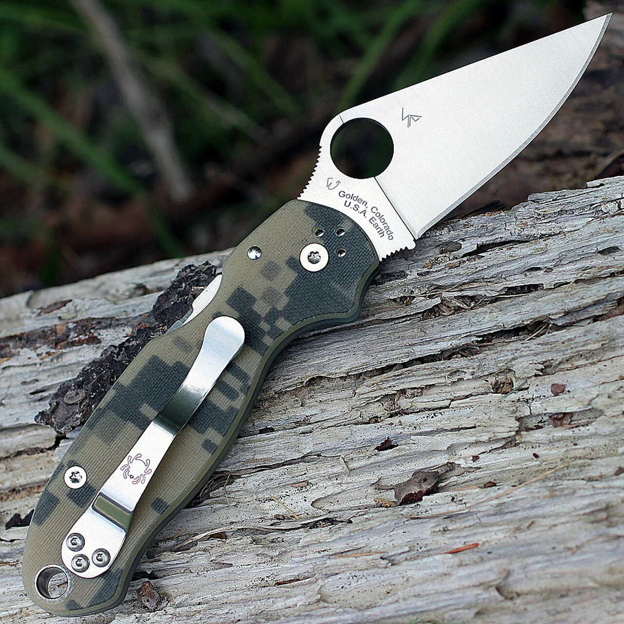 Inspired by the iconic Para Militaryโข 2, the Para 3 distills all the features of that best-in-class folding knife into a more compact, carry-friendly package. For military end users or those who prefer a tactical look to their knives, this version of the Para 3 boasts digital camouflage-patterned textured G-10 scales that approximate the pattern of the U.S. Armyโs ARPAT camouflage. The scales are precision machined to contain nested stainless steel liners that are the foundation of the knifeโs high-strength Compression Lockโข mechanism. On the business end, this knife features a full-flat-ground CPMยฎ S45Vยฎ stainless steel blade with a PlainEdgeโข cutting edge and a fully accessible Trademark Round Holeโข for quick, ambidextrous, one-handed opening. To keep the knife ready for immediate access, it includes a four-position clip that can be configured for left or right-side tip-up or tip-down carry.