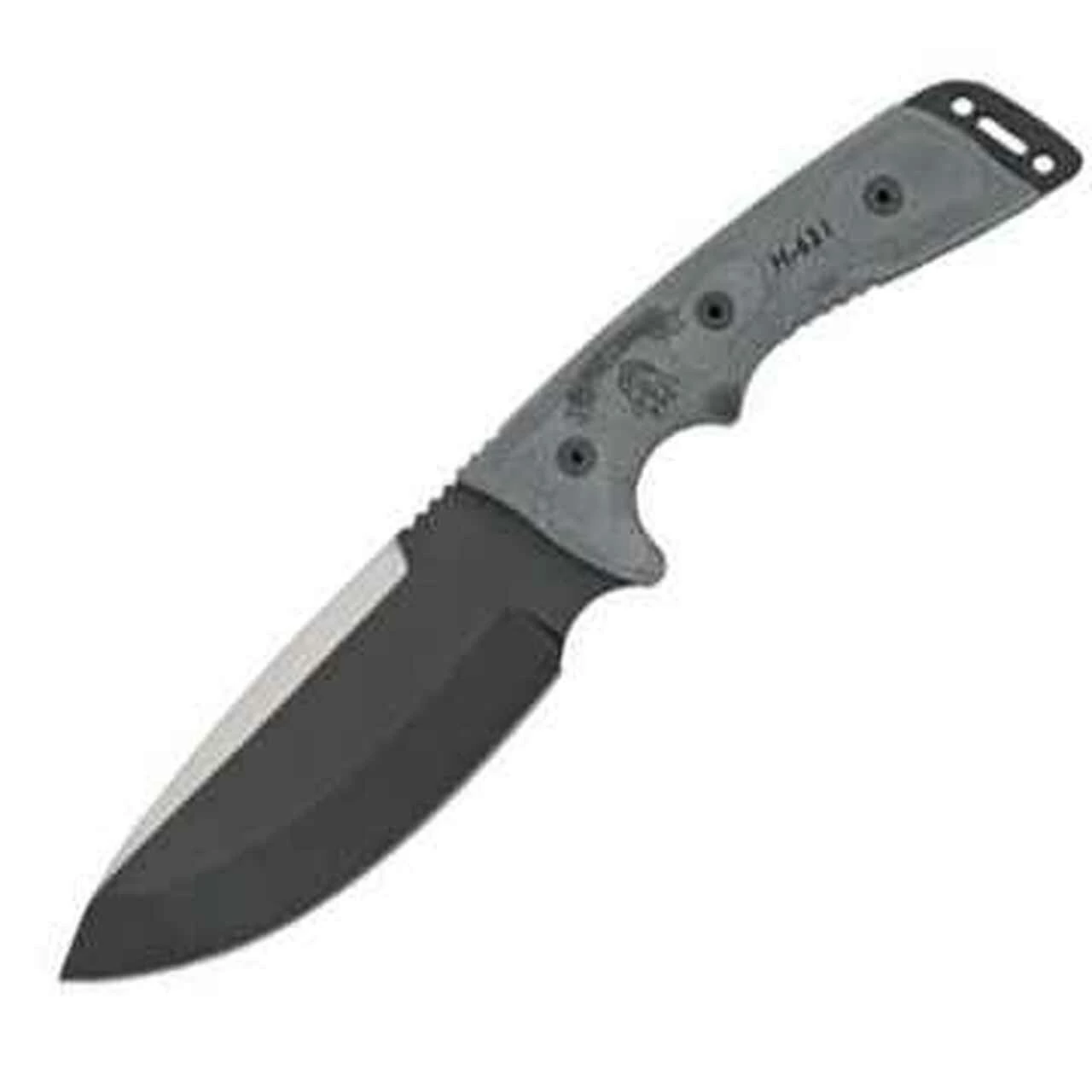 Tops Outpost Command. 11 1/4″ overall. 5 5/8″ black traction coated 1095 carbon steel blade. Full tang. Black linen micarta handles with lanyard. Black ballistic nylon sheath with Kydex liner.