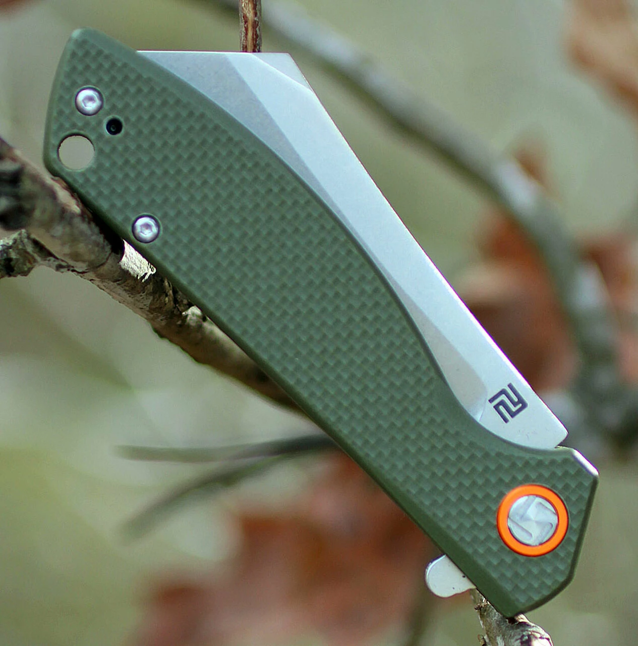 Artisan Tomahawk ATZ1815PSGNF, 2.36″ D2 Steel Tanto Blade, Green G10 Handle