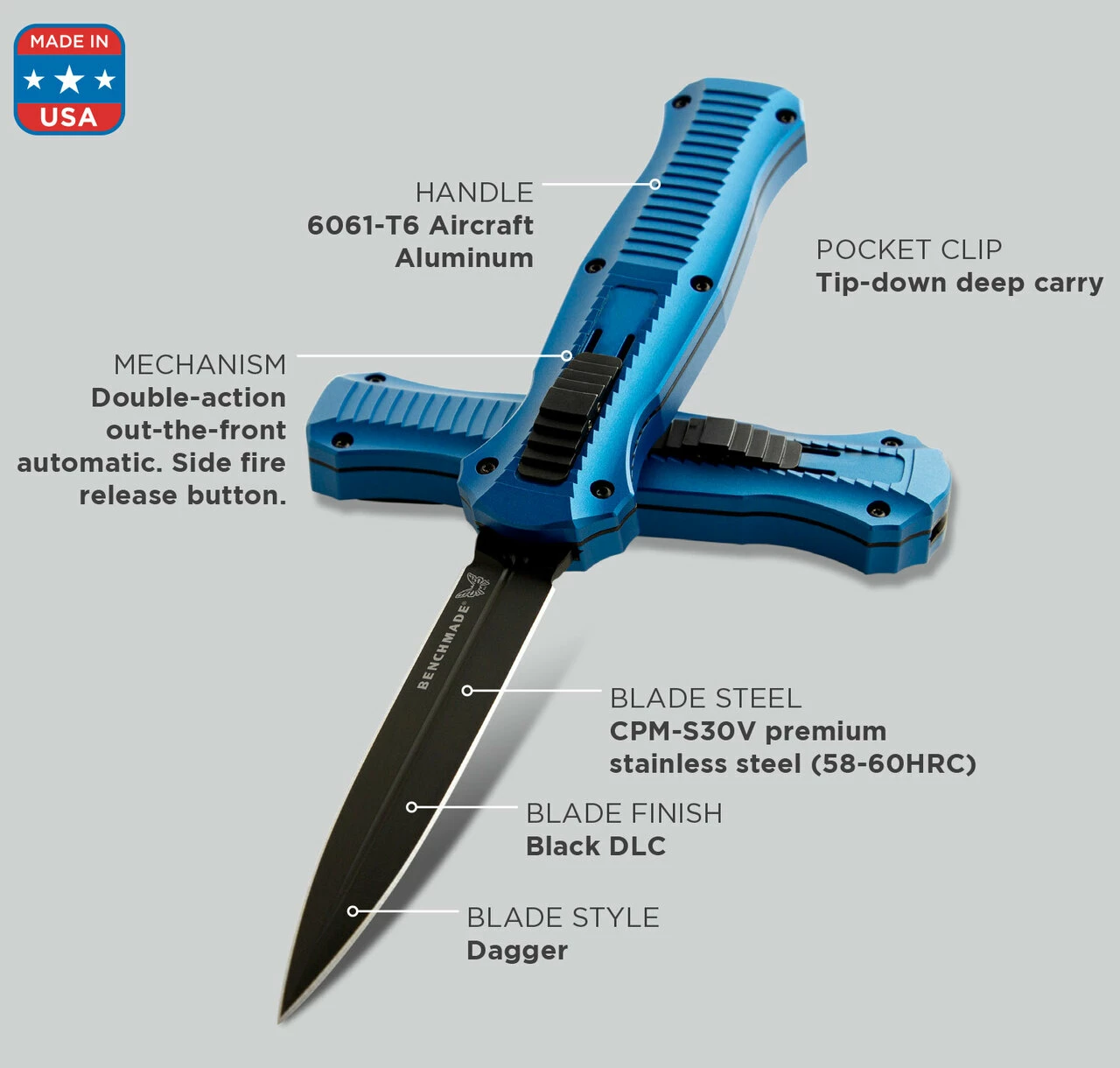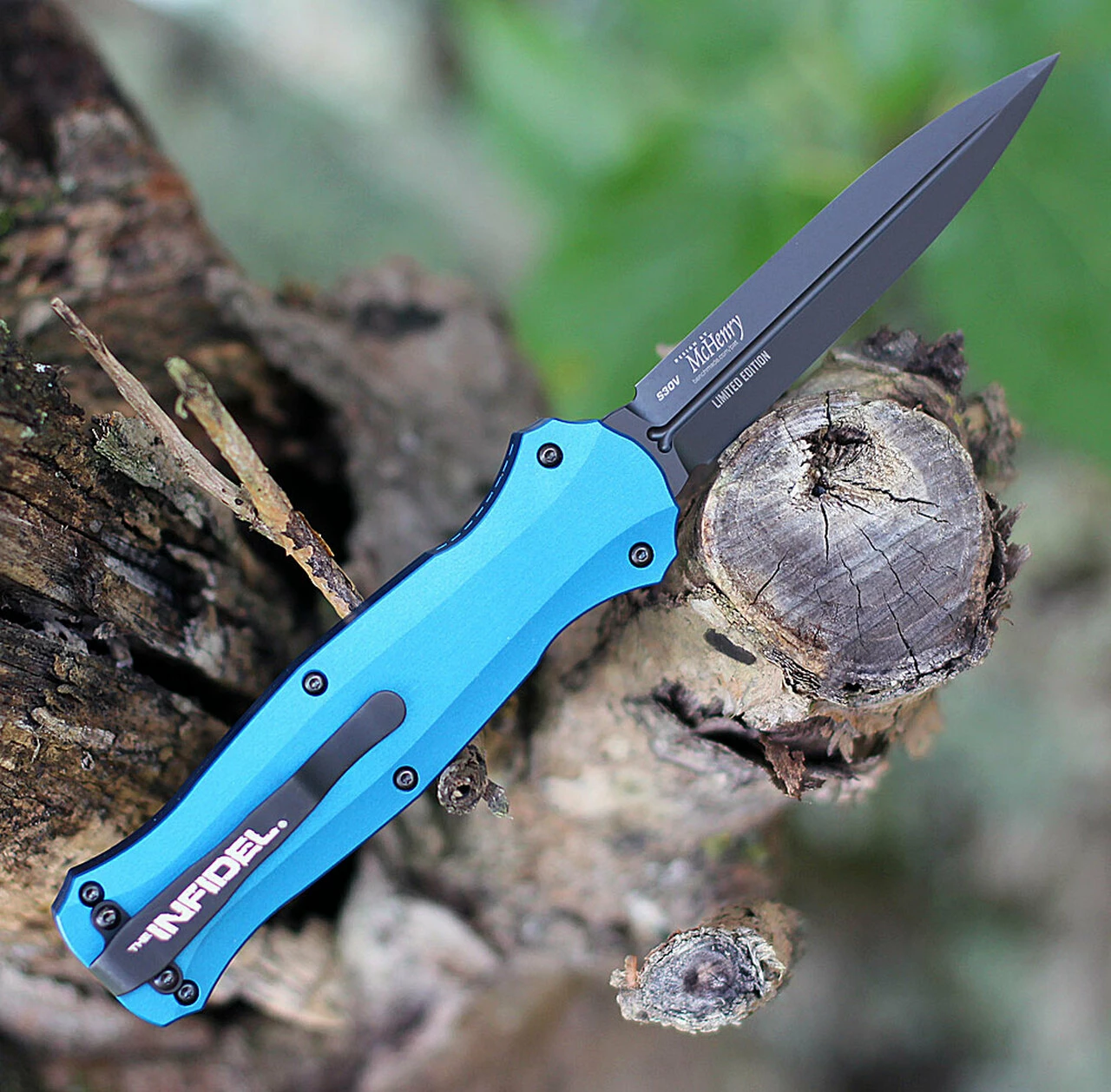 For the days you simply don’t need to fly under the radar, the new 3300BK-2001 is the latest iteration of the popularized Infidel®️ OTF platform. Building upon the decade-long legacy of the Infidel®️ family, the 3300BK-2001 brings a new flourish of color to this overtly tactical design with blue anodized handles. Updated to a CPM-S30V blade with a black DLC finish, this fan-favorite is a statement piece that’s built to last. The 3300BK-2001 is a Unlimited Limited product, that will only be available for 1 year. Get yours now!