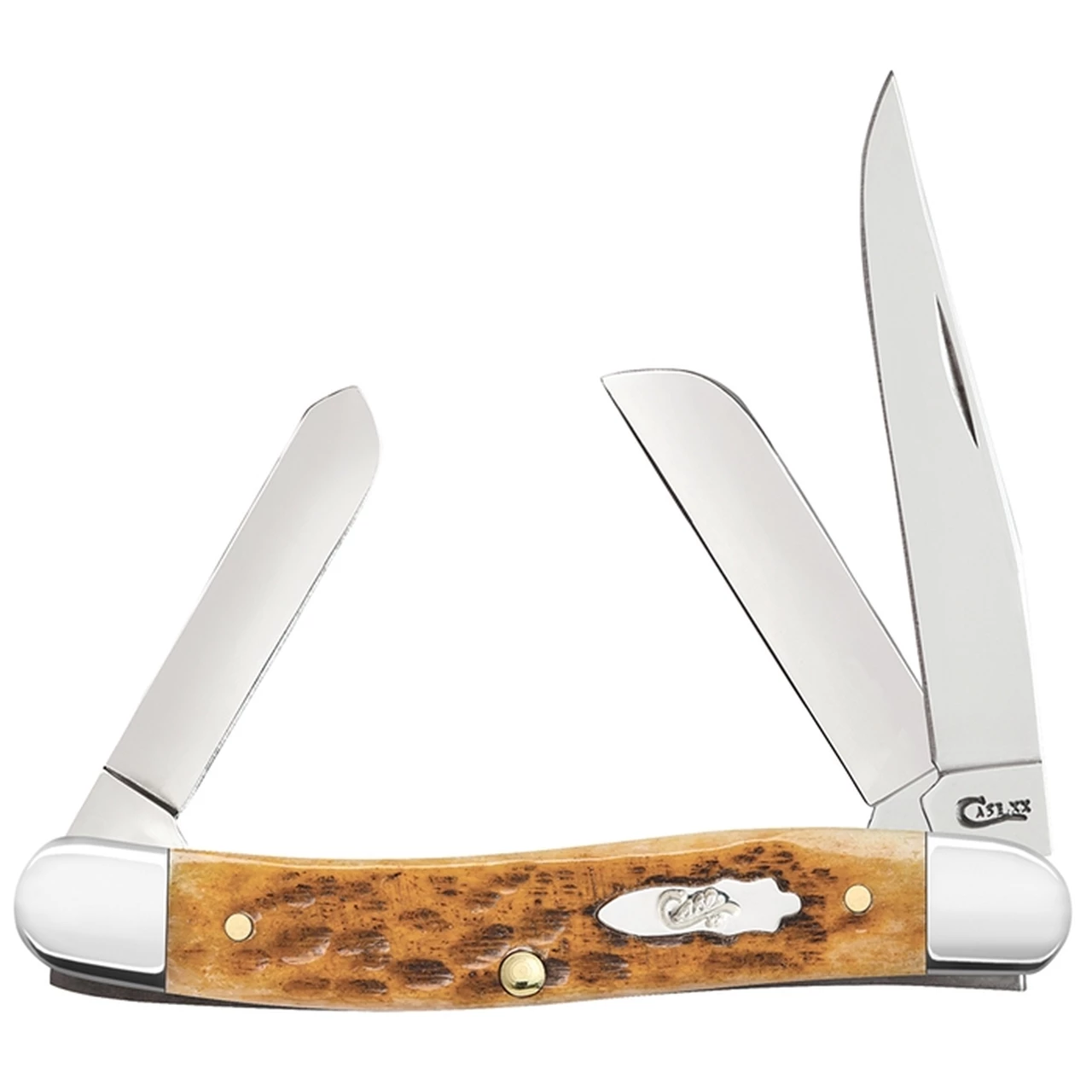 CASE MEDIUM STOCKMAN 70779, 3 5/8″ CLOSED LENGTH SS BLADE, JIGGED ANTIQUE BONE HANDLE