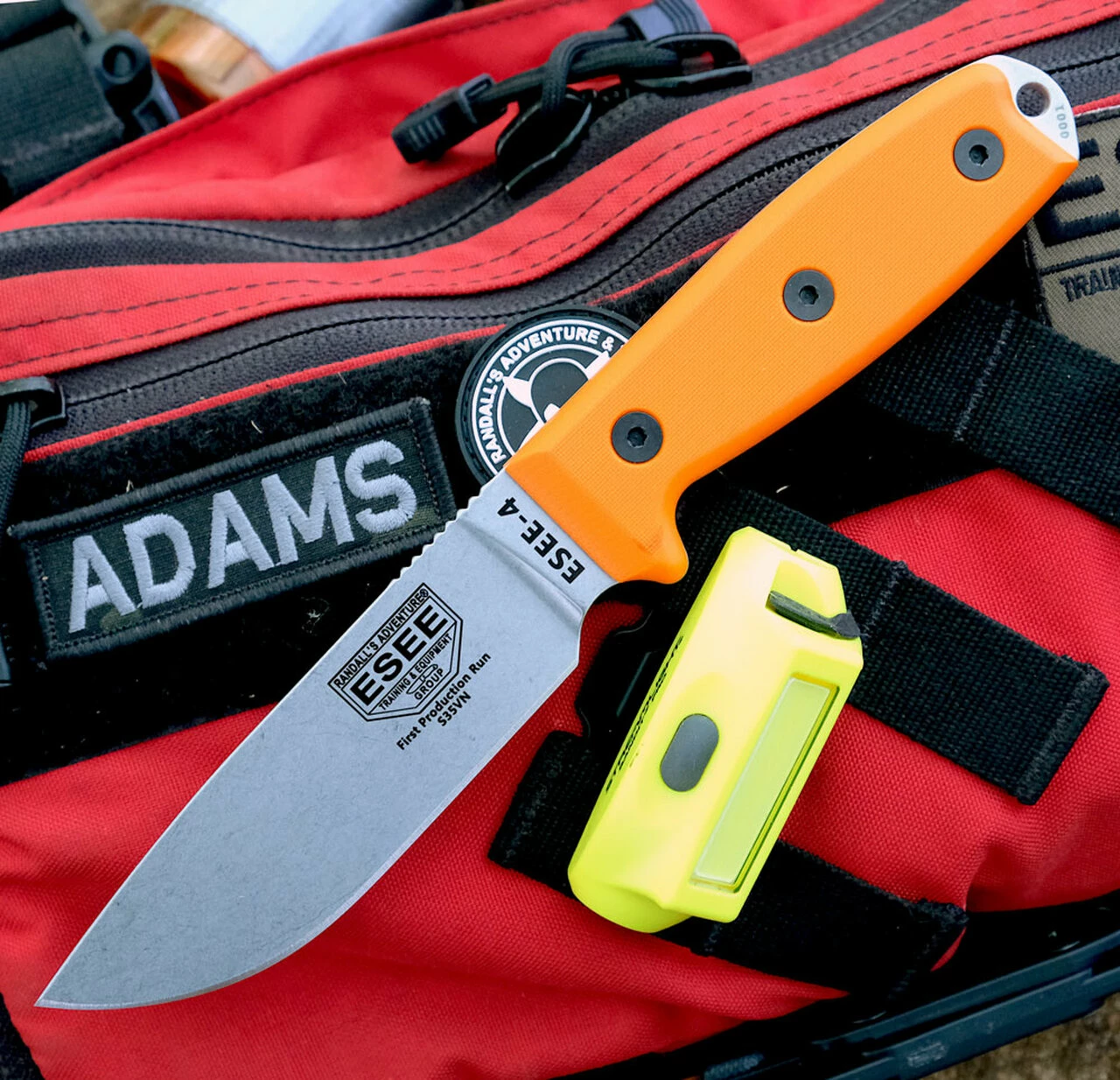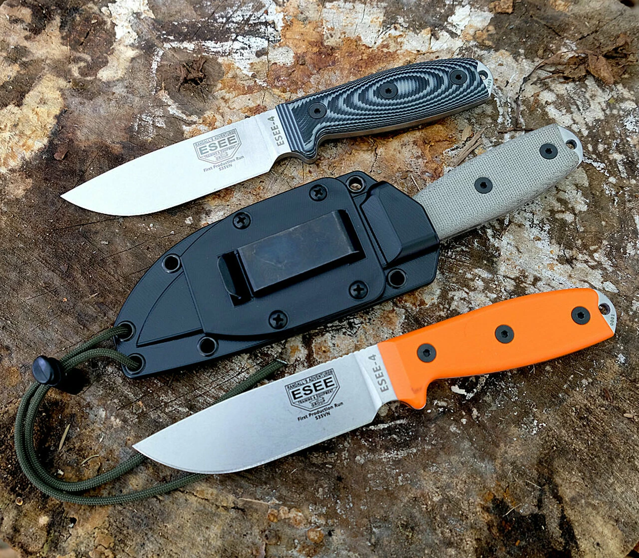 ESEE-4P35V-OR, 4.5″ S35VN Plain Blade, Orange G-10 Handle, Black Sheath