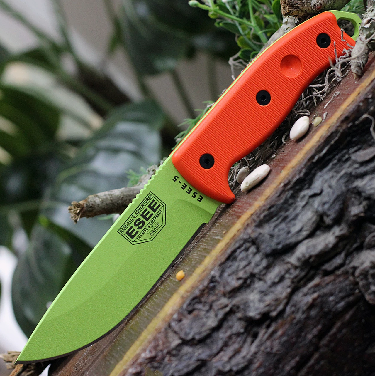 ESEE Model 5, Orange Handle, Venom Green Powder Coated Blade