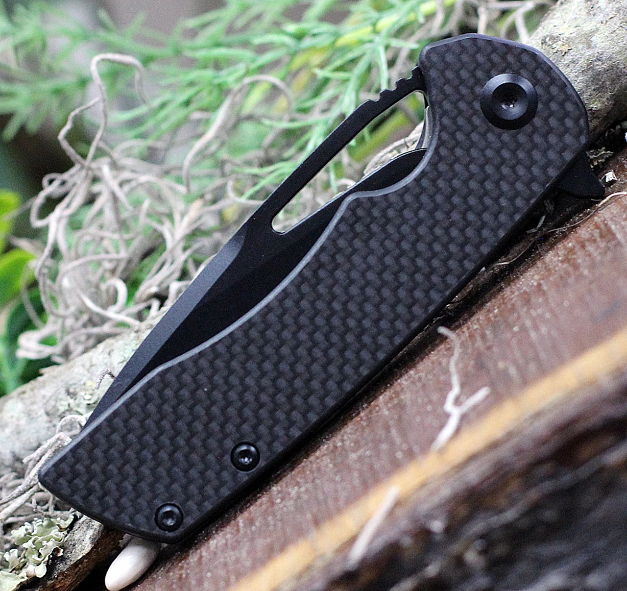 Black carbon fiber handle for a smooth gripping surface that is comfortable in the pocket or hand.