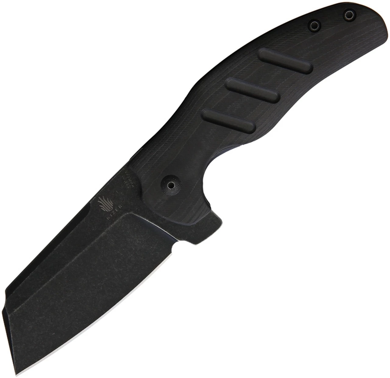 The Kizer C01C features a heavy-duty cleaver design from Chris Conaway of Sheepdog Knives. Its large sheepsfoot style blade is made from premium CPM-S35VN stainless steel with a black stonewash finish. The blade deploys effortlessly on a smooth ball bearing pivot, and locks up solid. Contoured titanium handle scales provide a comfortable grip and a resilient build. This knife offers a remarkable combination of tactical functionality and a refined, stylish appearance.
