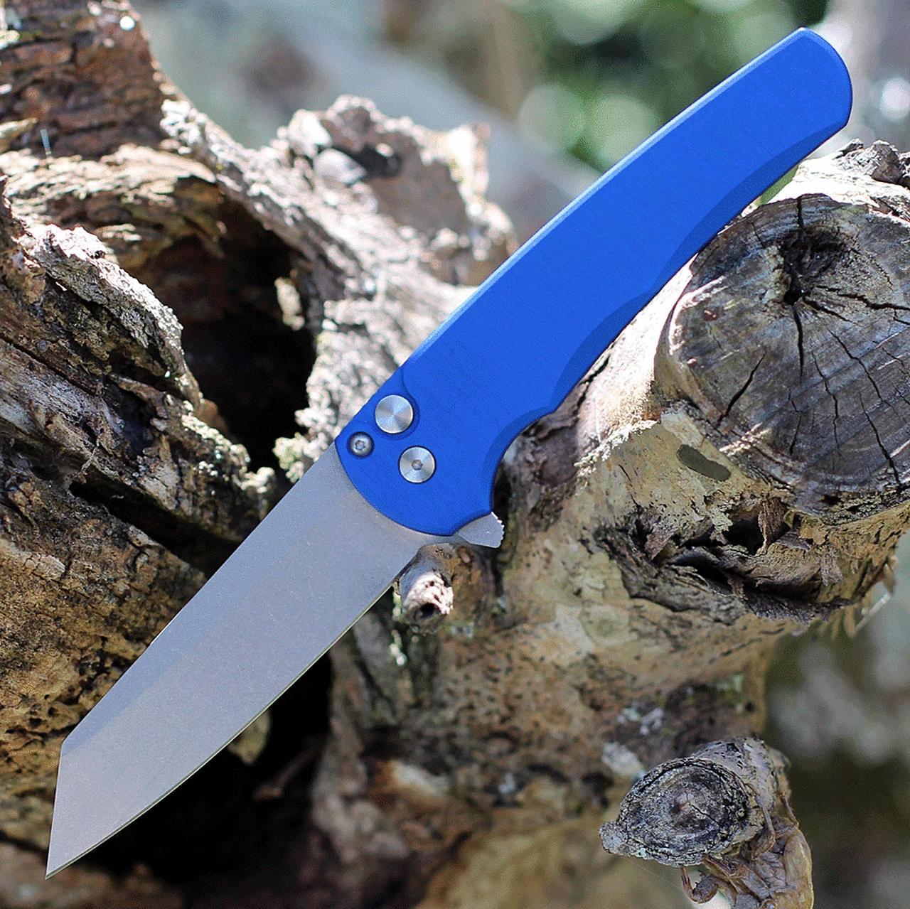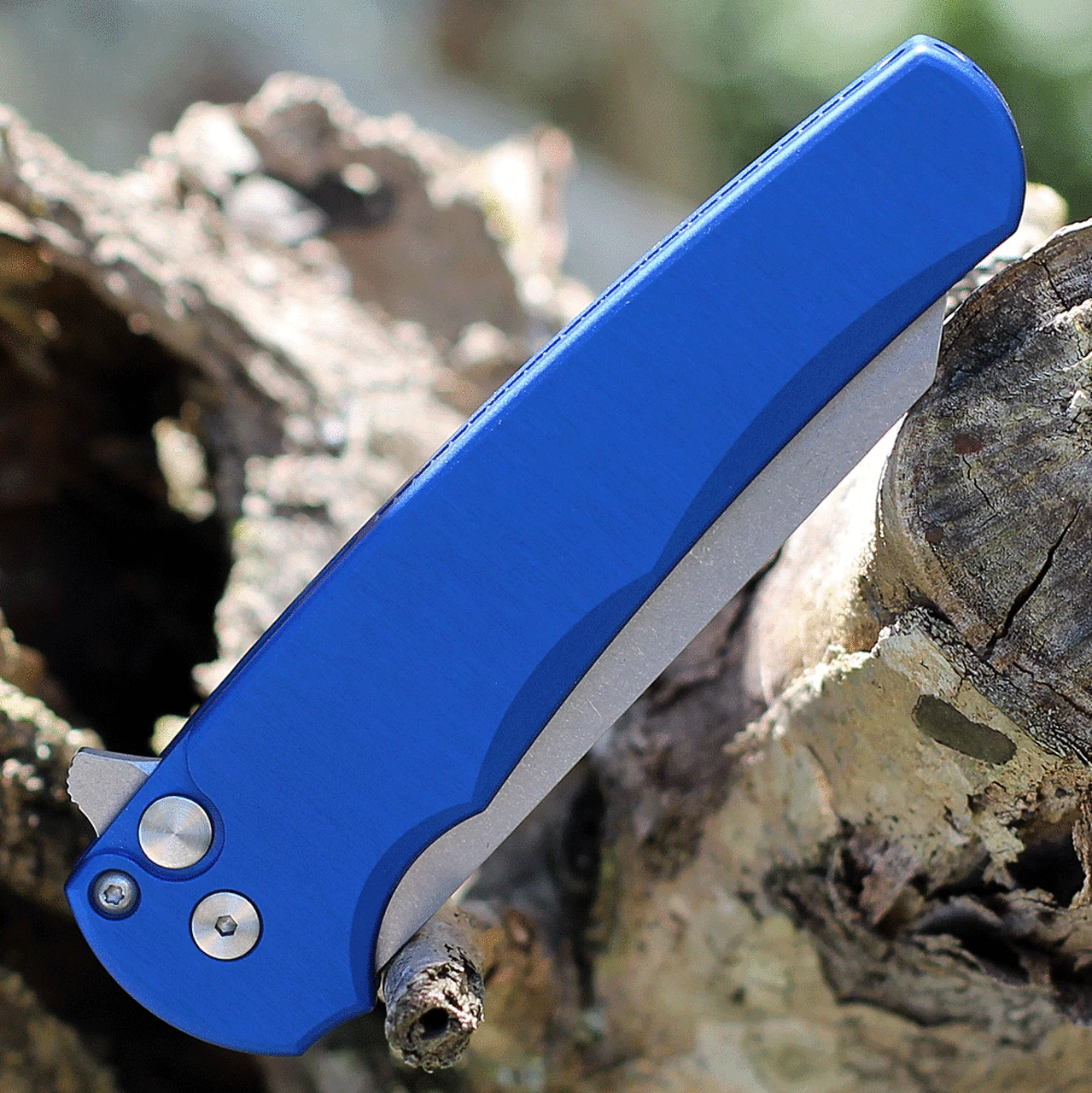 Pro-Tech Knives Malibu Flipper Knife (5201-BLUE) – 3.25″ CPM-20CV Stonewashed Reverse Tanto, Blue Aluminum Handle