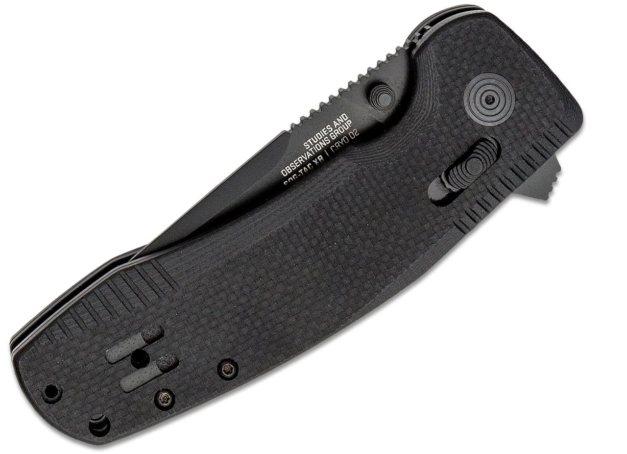 SOG SOG-Tac XR Folding Knife 12-38-01-57, 3.39″ D2 Black Drop Point Plain Blade, Black G-10 Handle
