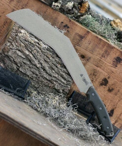 TOPS Knives The Bestia TBST-01, 13″ 1095 Tactical Stone Kukuri – Like Chopper, Tan & Green Canvas Micarta Handle, 2020 Shot Show