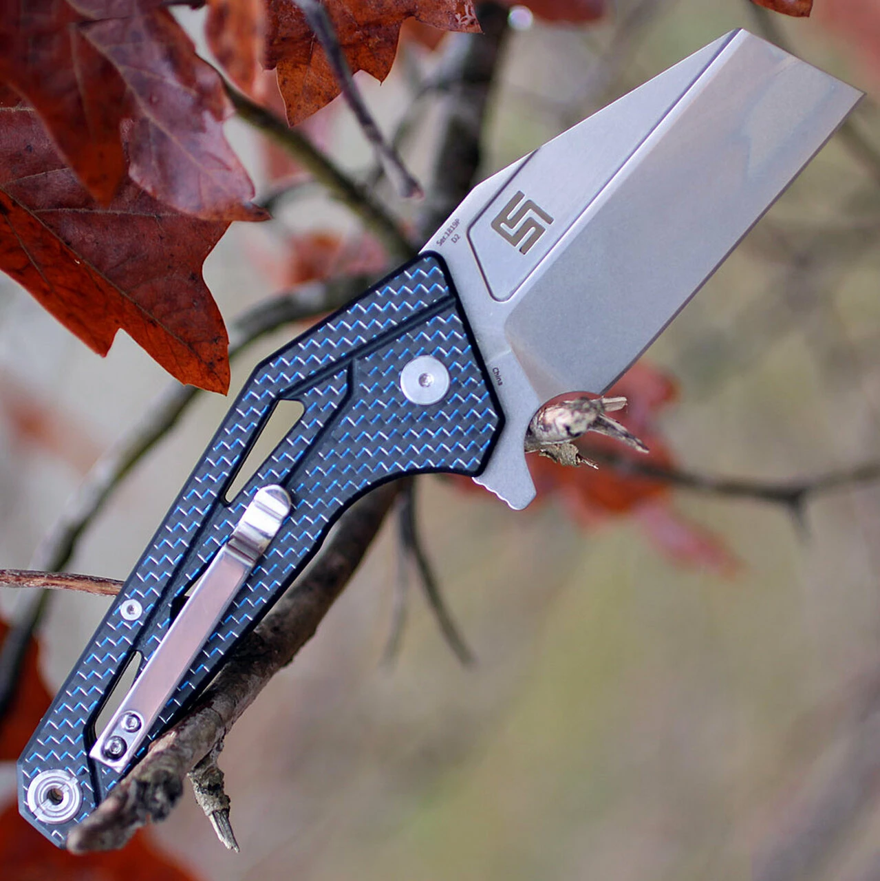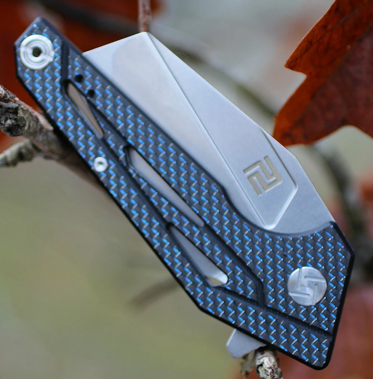Artisan Ravine ATZ1819PCFB, 2.83″ D2 Steel Tanto Blade, Blue Carbon Fiber Handle