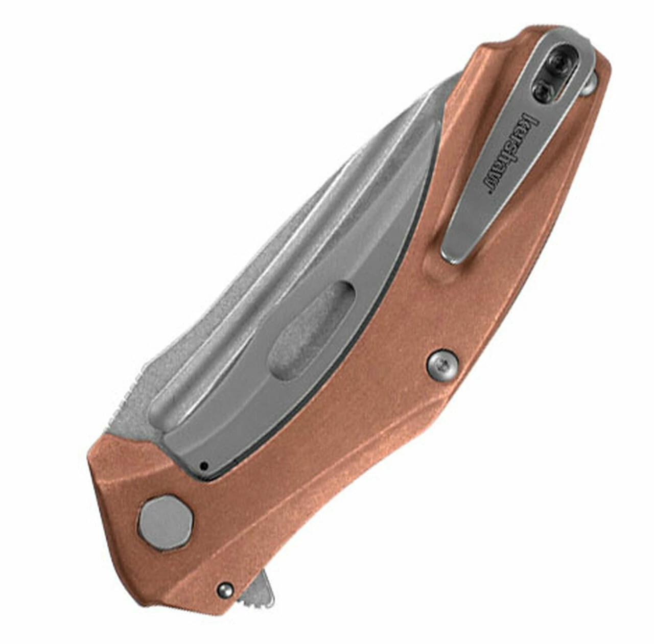 The copper Natrix now comes in small, medium, and large. With its 3.25-inch drop-point blade, this medium-sized Natrix makes a perfect EDC and offers solid performance. The blade is D2 blade steel, a high-carbon tool steel that’s highly wear resistant, tough, and offers excellent edge retention. The denser-that-steel copper handle gives the knife has some heft—but it still comes in under five ounces. Over time, the copper will take on a patina, making each copper Natrix unique. Kershaw’s KVT ball-bearing opening makes it easy to open the knife one-handed. A decorative pivot and backspacer add embellishment.
