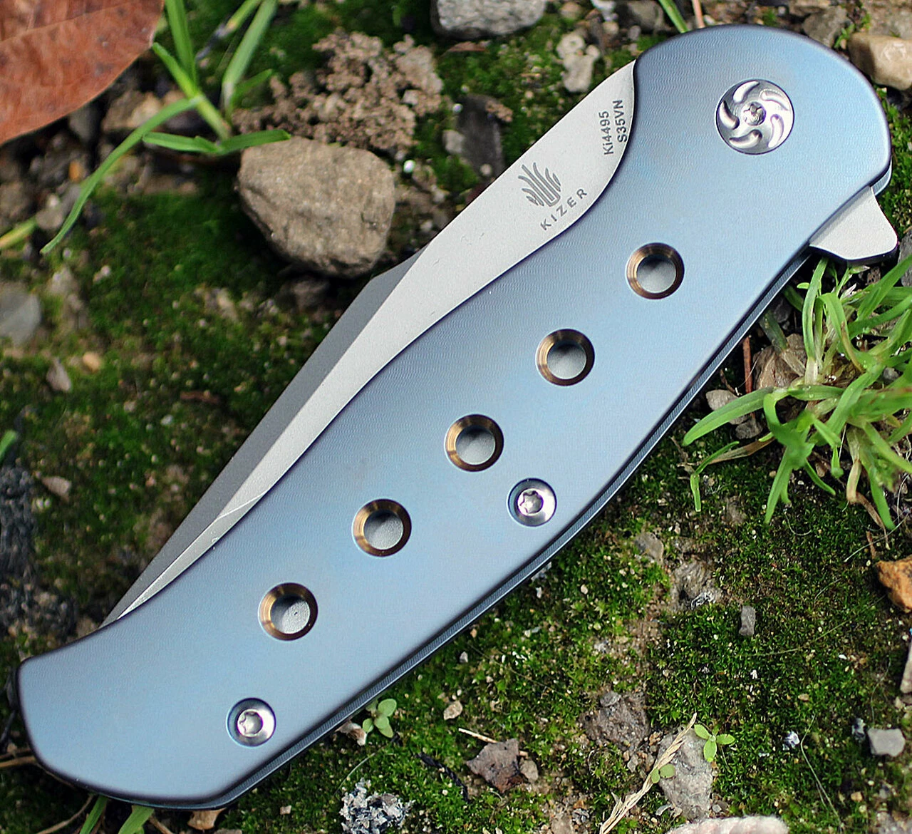 Kizer 4495 Lancer 2, 3.5″ CPM-S35VN Plain Blade, Blue Titanium Handle