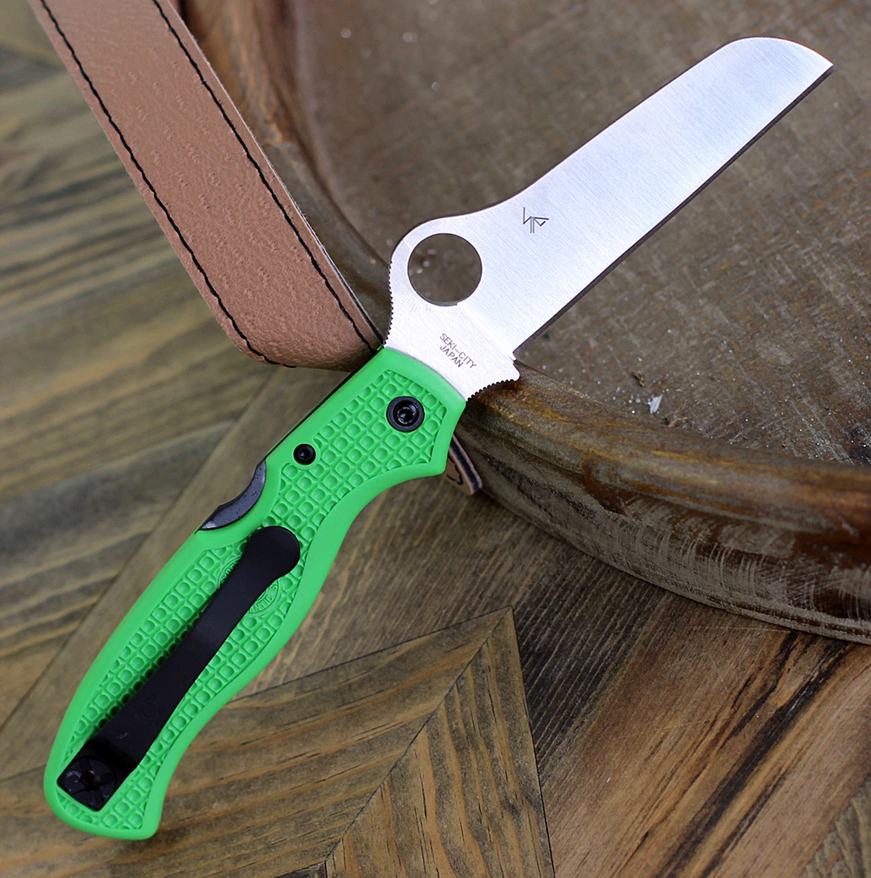Also available in an aggressive SpyderEdgeโข configuration, its blade is full-flat ground for low-friction cutting performance and is supported by a sturdy back lock mechanism. The lightweight handle is injection-molded in the distinctive green color of the LC200N series and is home to a reversible pocket clip that provides ambidextrous tip-up carry.