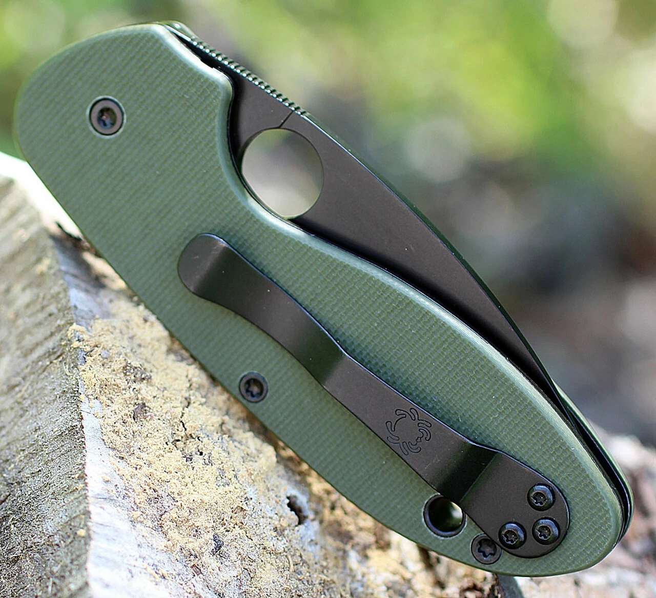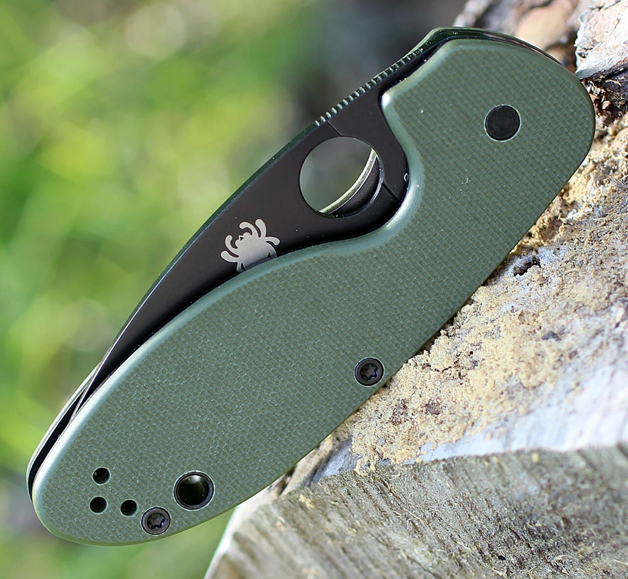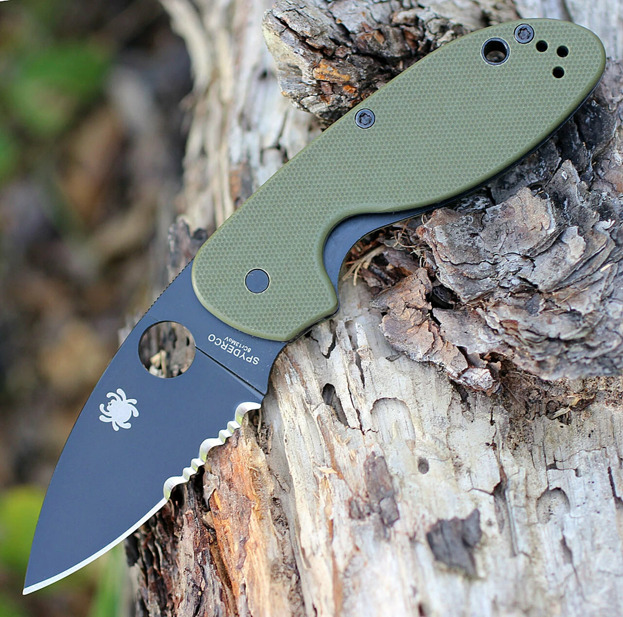 Spyderco C216GPSGRBK EFFICIENT, Black Part Serrated Blade, Green G-10 Handle