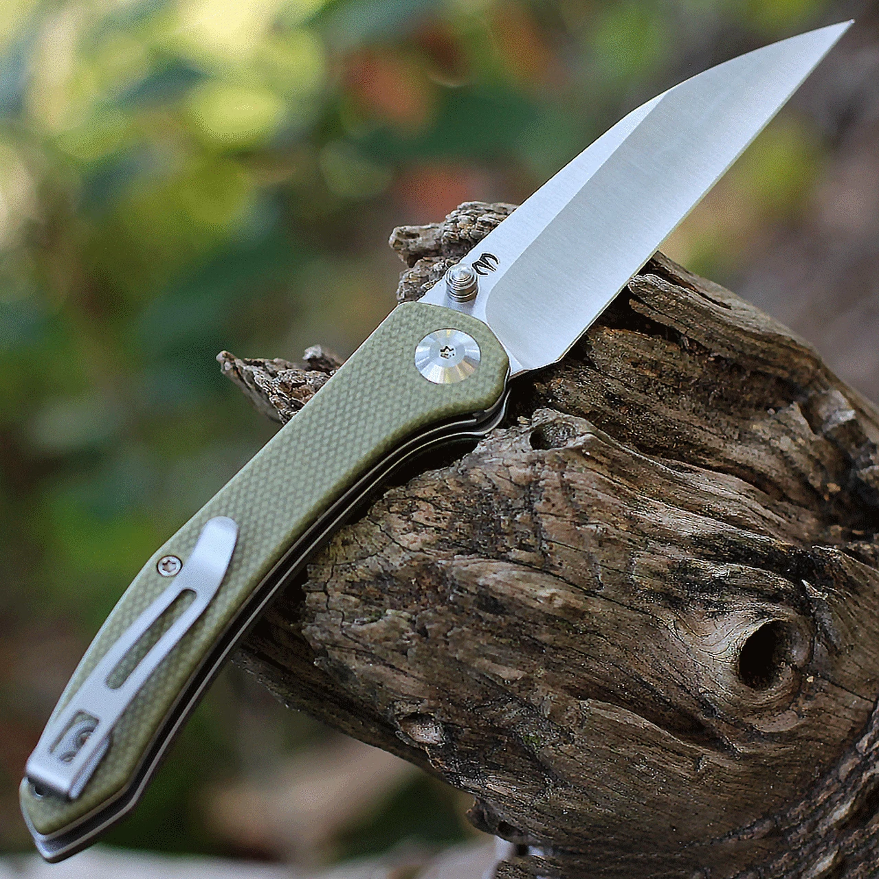 CIVIVI Hadros Folding Knife (C20004-3) – 3.35″ 10Cr15CoMoV Satin WharncliffeBlade, Olive Green Micarta Handle
