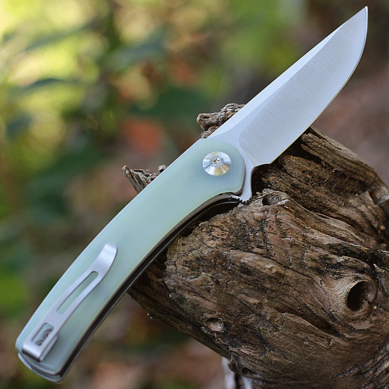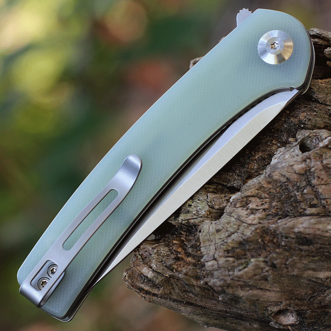 CIVIVI Mini Asticus Flipper (C19026B-3) 3.25″ 10Cr15CoMoV Satin Drop Point Blade, Natural (Jade) G-10 Handle