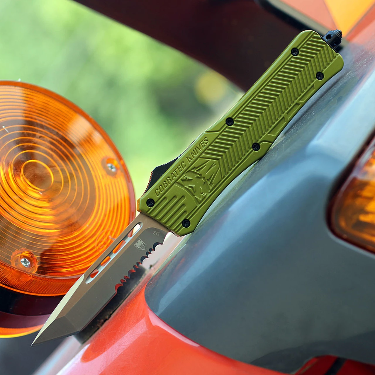 CobraTec Knives MODCTK-1MTS Medium CTK-1 OD-Green, 3.0″ D2 Steel Tanto Part Serrated Blade, Aluminum Handle