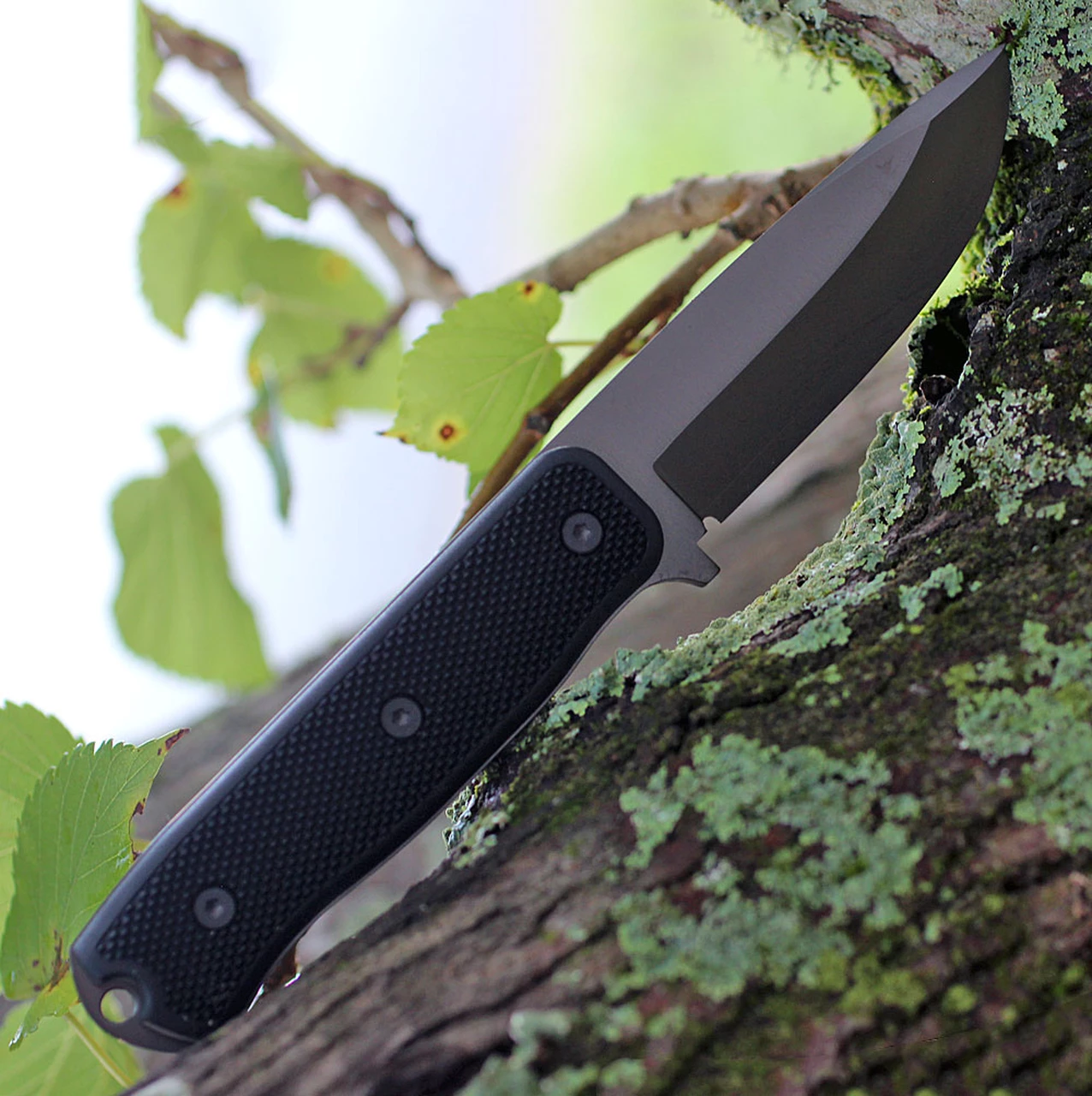 A few words about the all-black version: This surface is the hardest we have ever encountered. Although we really tried to wear down the black coating with the toughest, driest curly birch we could find, we never succeeded in getting holes in this extremely hard, durable surface. Still, we cannot guarantee that it will stay for time and eternity, after all, the blade can be ground and certainly bites a diamond or ceramic stone on the surface. But you have probably never met a harder surface, the hardness is at 2400 HV (Vickers) or around HRC 83.