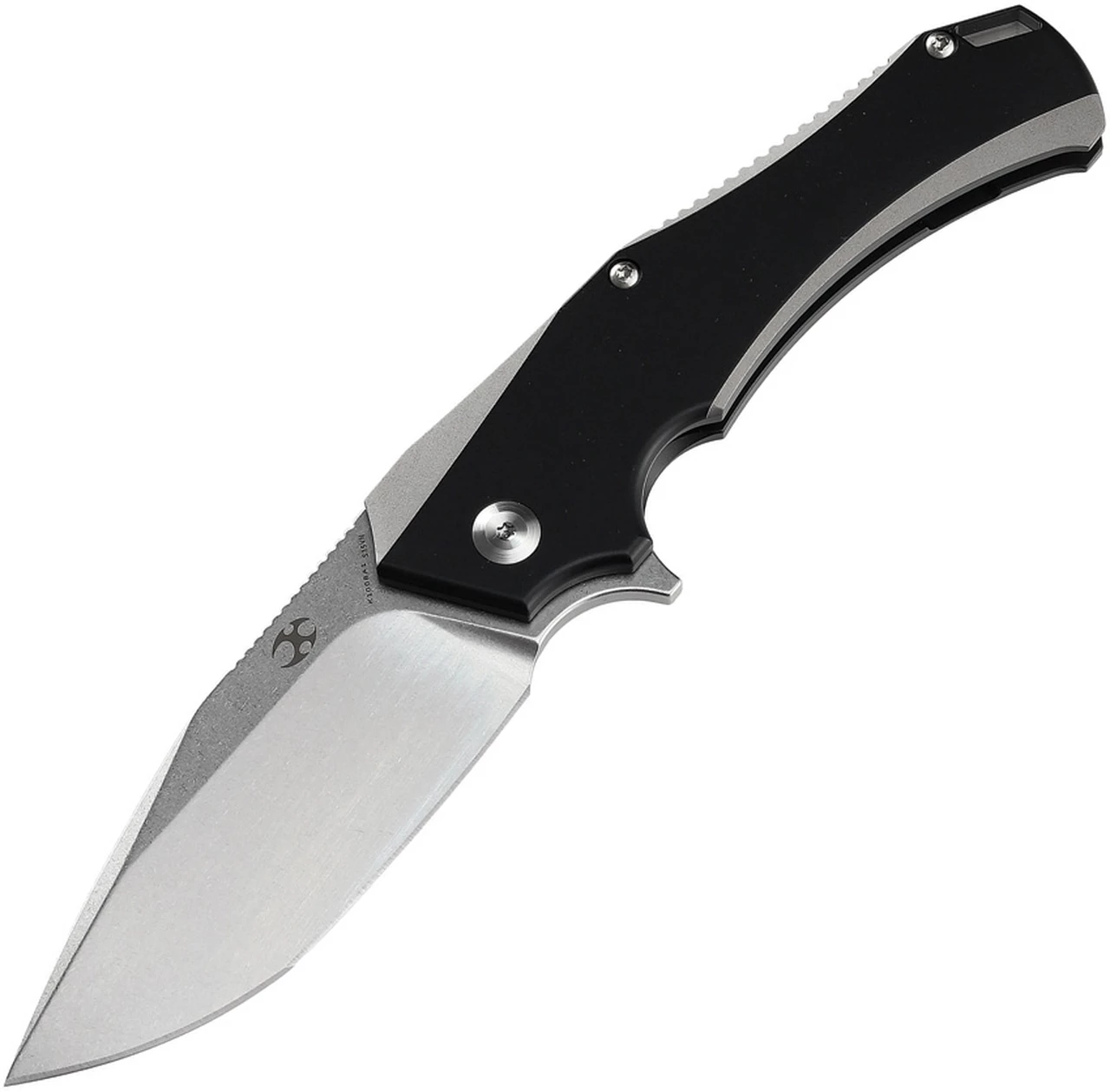 The Hellx K1008A1 is build with a stonewashed S35VN blade and a two-tone black coating and plain titanium handle.It’s a hard user with a ergonomic grip and size that makes it your perfect Tactical choice.