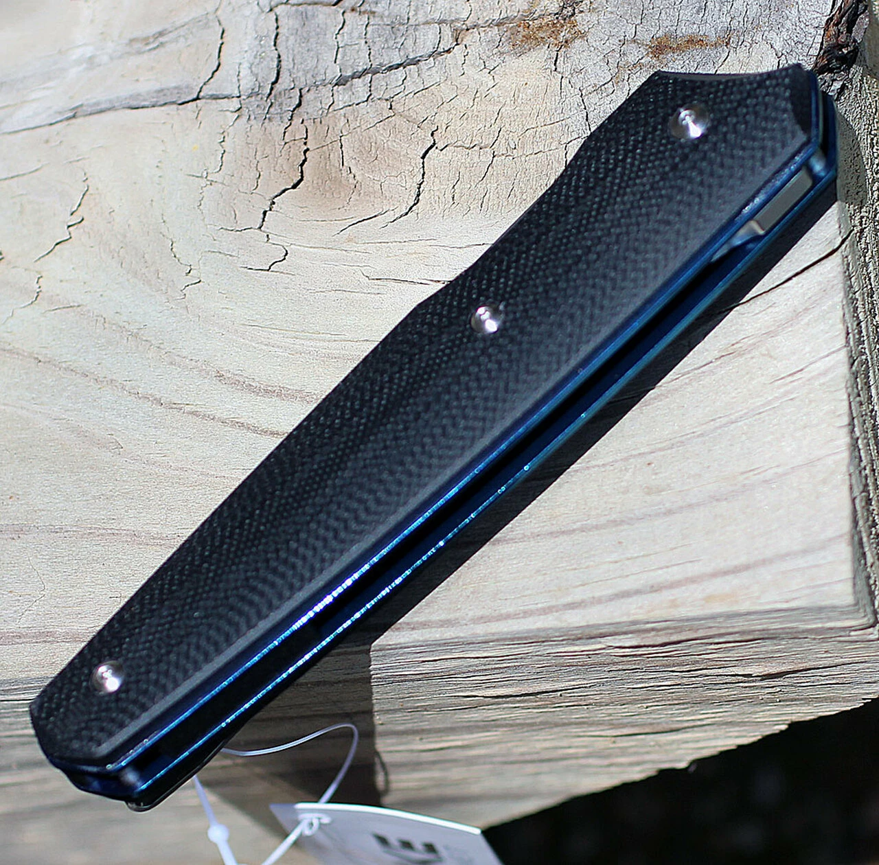 For EDC tool fans seeking safe-to-carry knives, P848B is worth recommending. Without any projecting parts like a flipper or thumb stud on the blade that may cause accidental blade opening, the P848B is easy to carry. Utilizing an easy-to-operate nail nick, P848B still offers smooth blade deployment thanks to the built-in roller bearing washer. The G10 handle is improved to be more tough and resistant to corrosion with blue titanium-coated stainless steel liner.