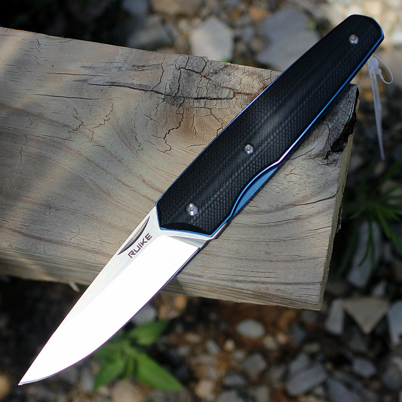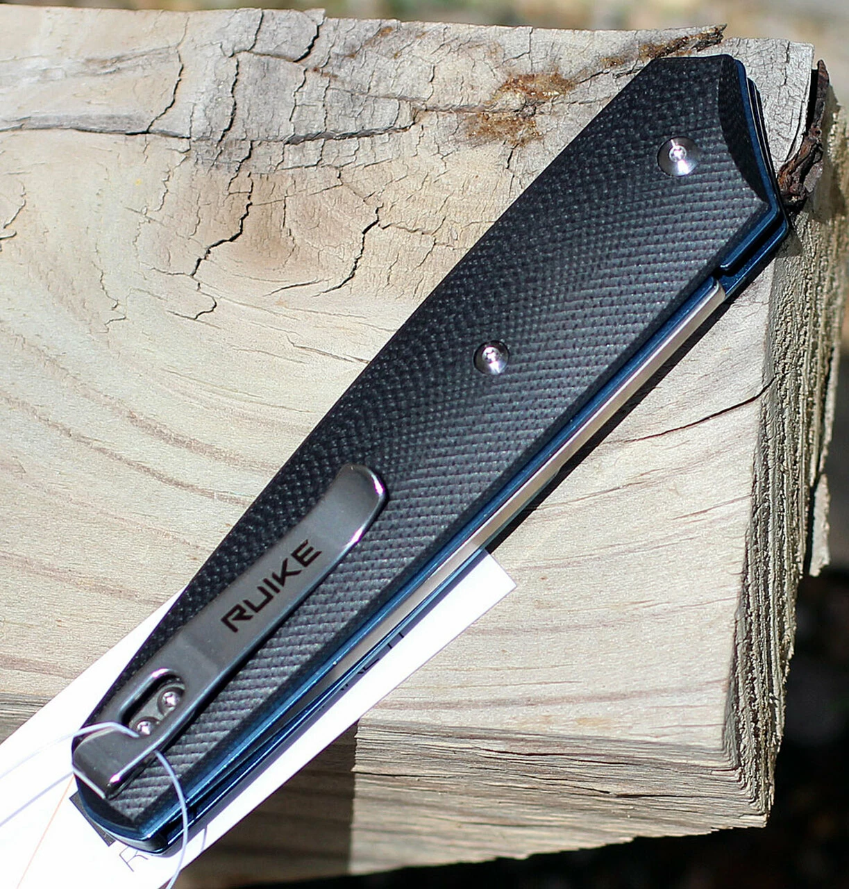 Ruike P848-B, 3.3″ 14C28N Plain Blade, Black G-10 Handle