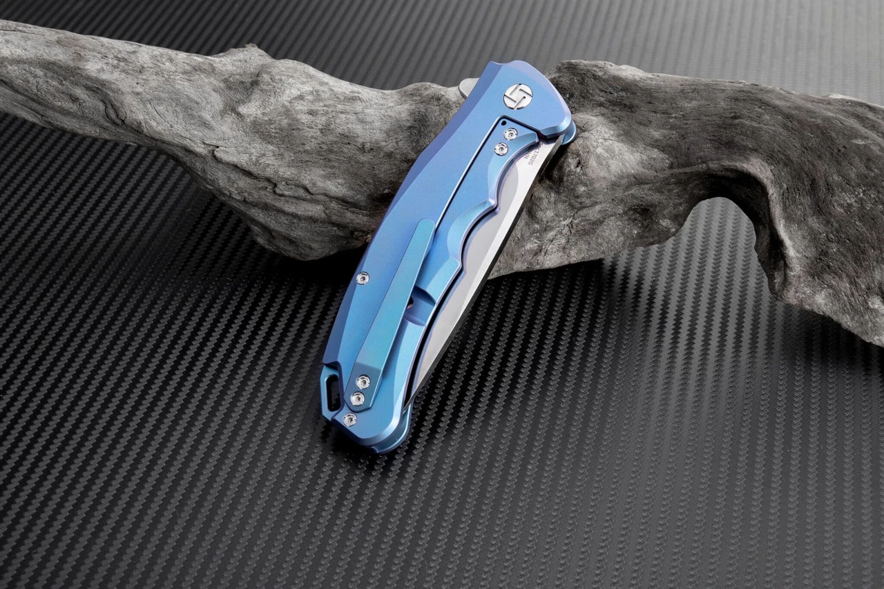 Artisan Tradition Framelock ATZ1702GBU, 3.94″ S35VN Plain Blade, Blue Titanium Handle