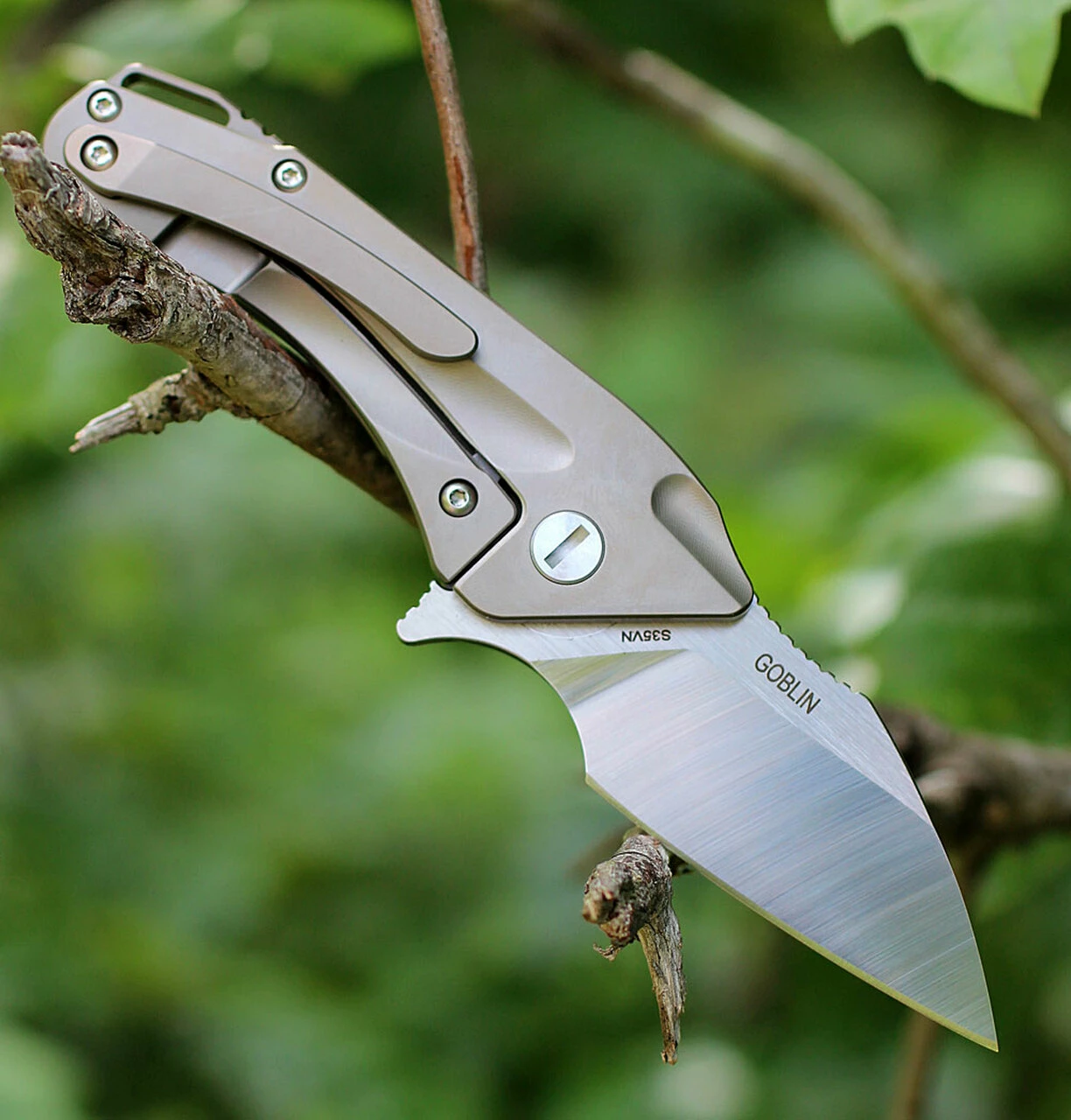 Bestech T1711A Goblin, 2″ CPM-S35VN Plain Blade, Titanium Handle w/Carbon Fiber Inlay