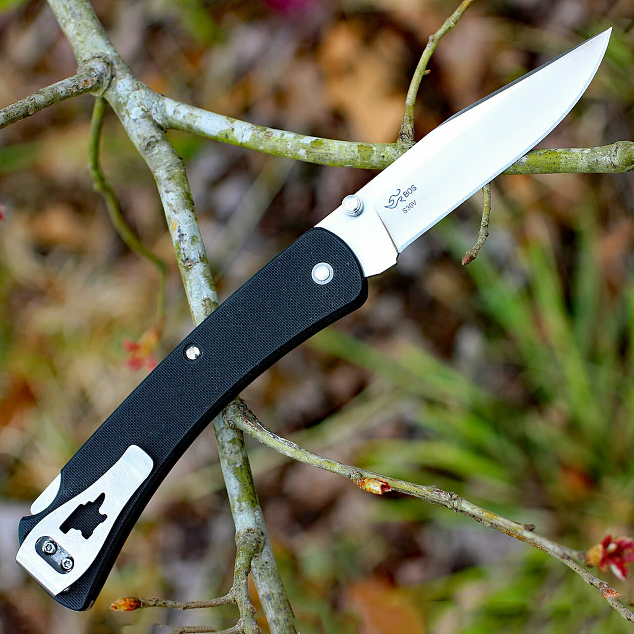 An advanced, thin EDC based on an American classic, the 110 Folding Hunter, the 110 Slim possesses the same traditional features but with a more modern look and upgraded materials. A removable, reversible deep pocket carry stainless steel pocket clip is added based on the overwhelming customer demand. With easy one-handed opening, the upgraded S30V stainless steel blade has supreme edge retention, hardness, ductility, and corrosion resistance and finished with Buck’s Advanced Edge2x Blade Technology. To decrease the weight and thickness, the heavy bolster and handles are replaced with durable Micarta® or G10 while still maintaining the same quality and rigidity of the original 110.