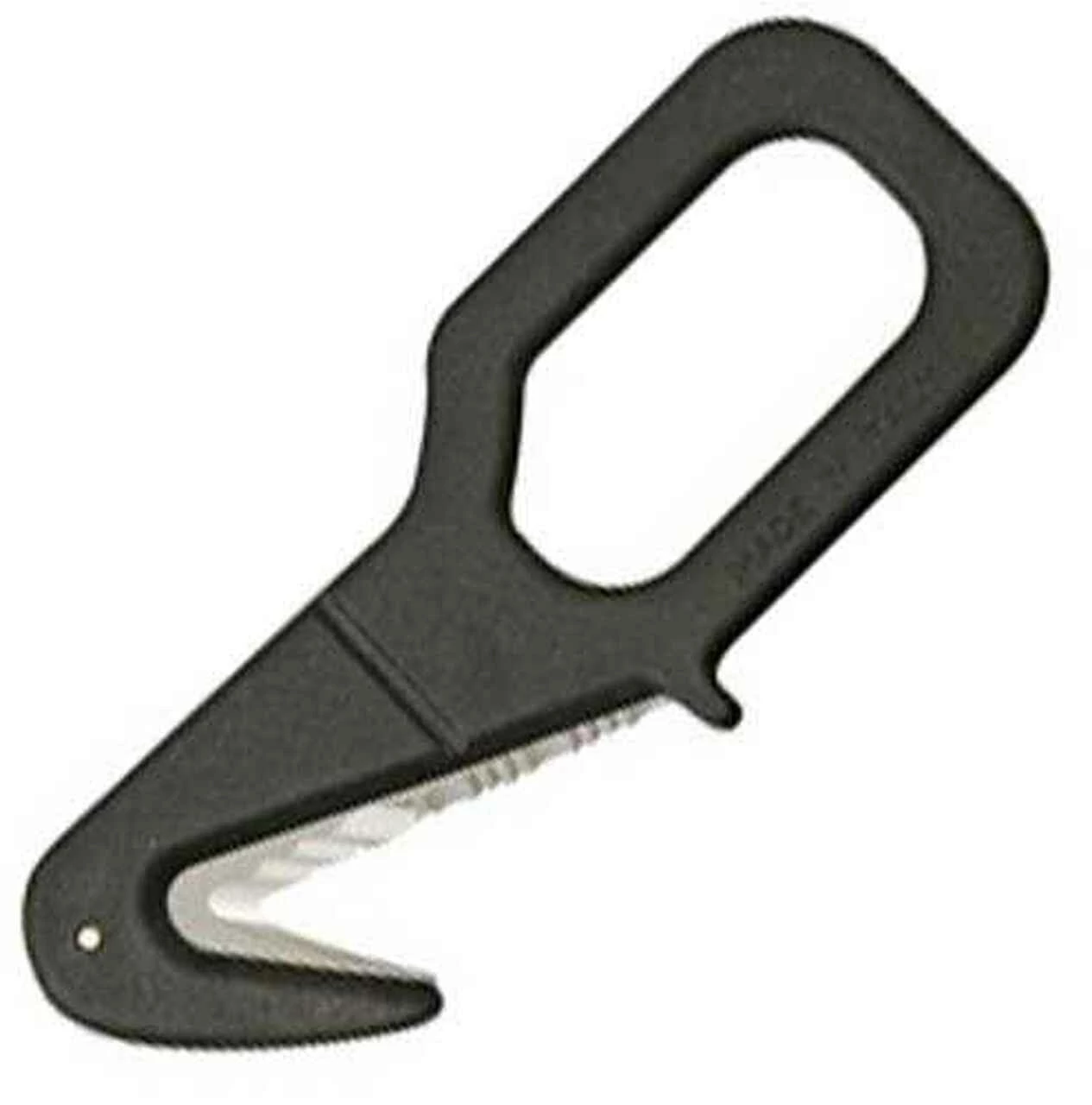 Fox USA Rescue Emergency Tool. 4 7/8″ overall. 2″ serrated stainless seatbelt cutter blade. AISI420 NATO Green Kydex handle and sheath. Made in Italy.