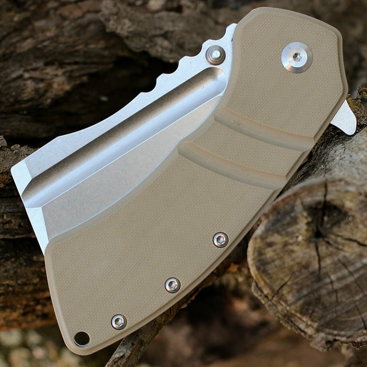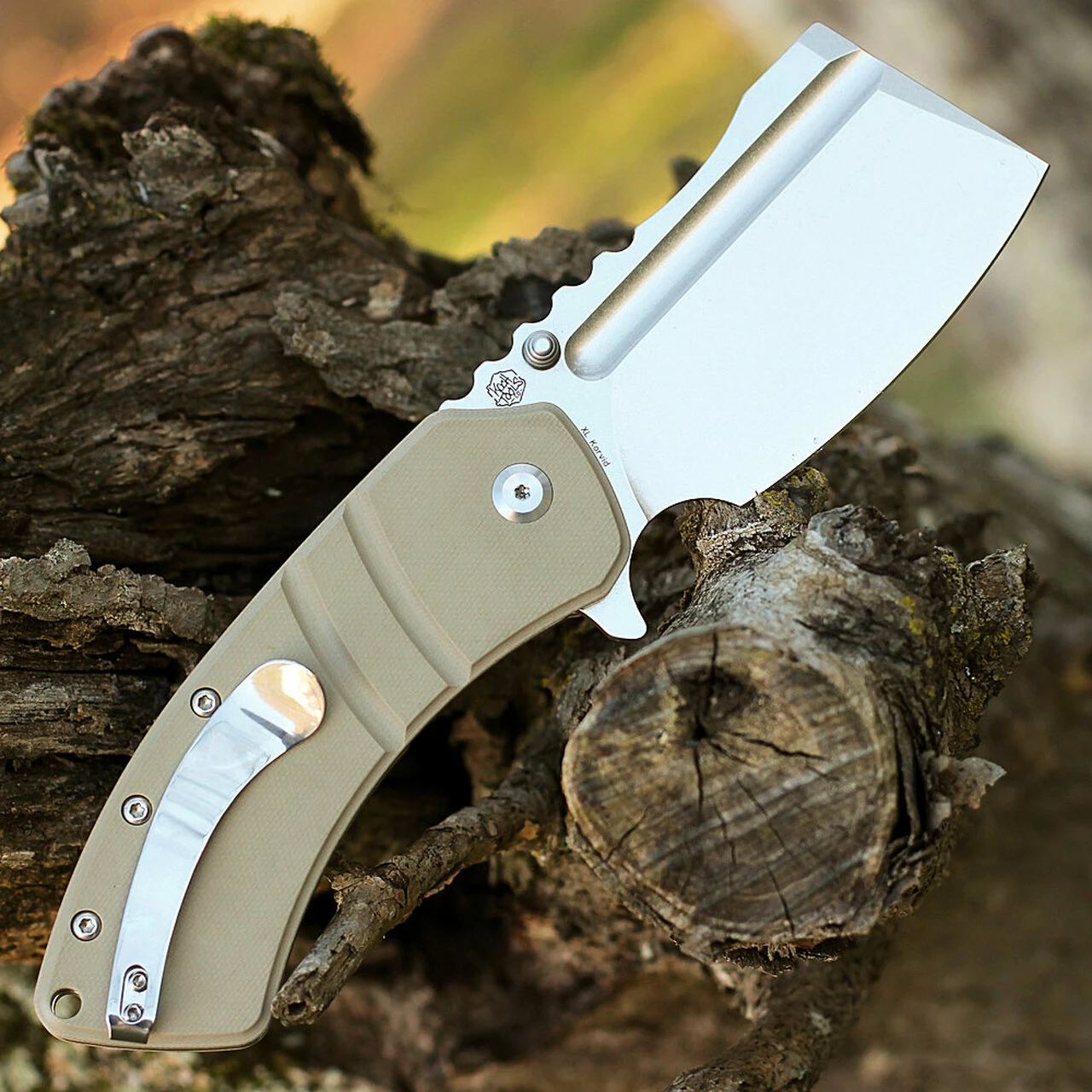Kansept XL Korvid Flipper (T1030A5)- 3.55″ Satin 154CM Cleaver Blade, Light Sand G10 Handle