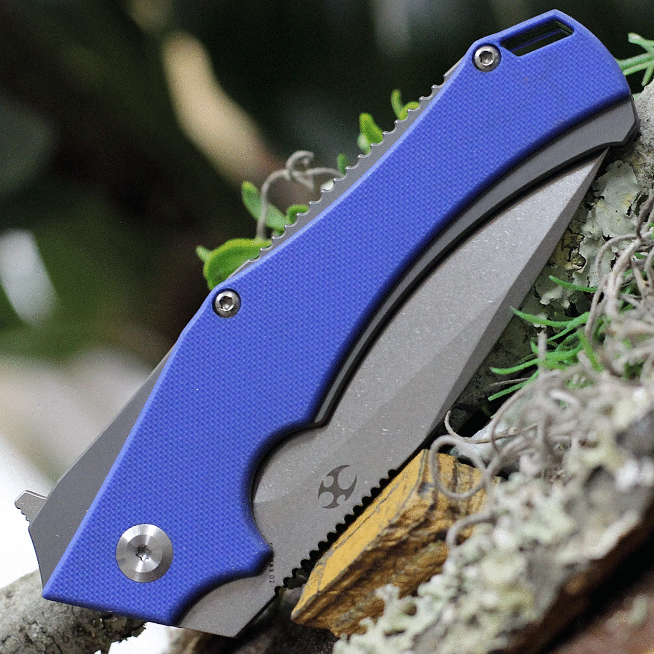 - Handle Material: Blue G10 and Anodized Gray Stainless Steel