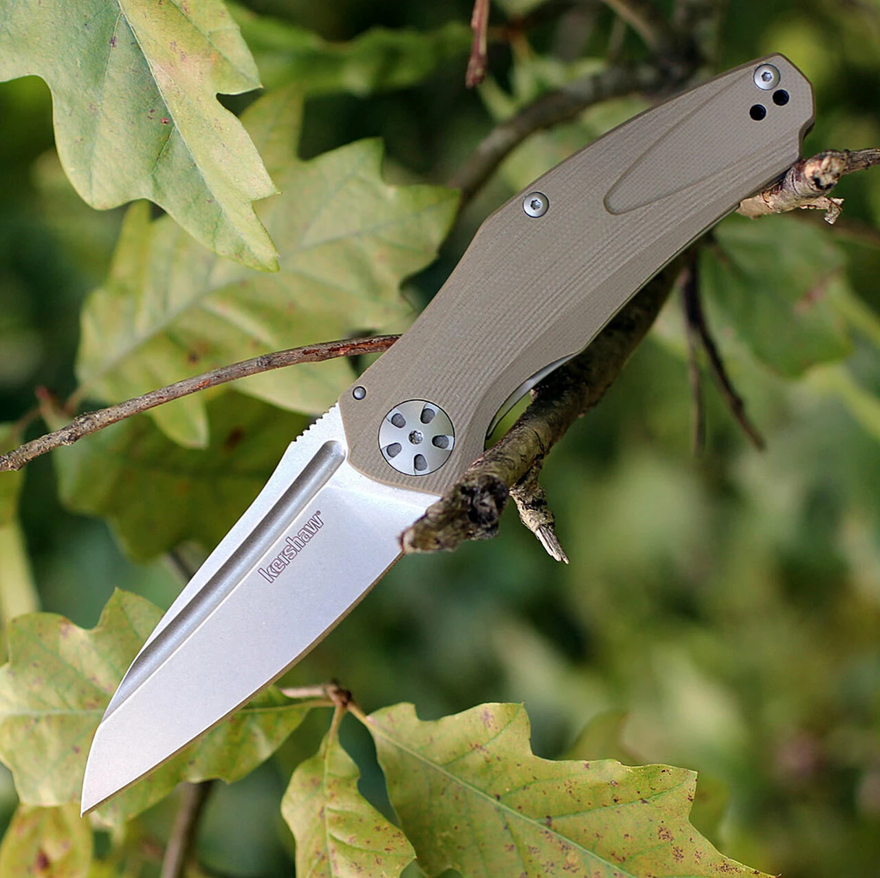 The Tan Natrix has a blade of 8Cr13MoV stainless steel, expertly heat-treated by Kershaw to bring out its high-performance qualities.