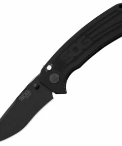 SOG BA1001BX Banner Button Lock Folder, 3.5″ S35VN Black Drop Point Plain Blade, Black Aluminum Handle