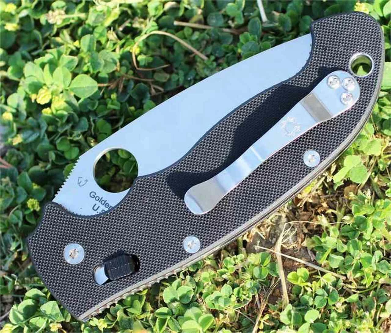 The spherical shape of the ball rotates freely allowing the lock to self-adjust across a large surface, ensuring smooth and confident lock-up every time it is opened. The blade is CPM S30V, ground full-flat and features jimping above the oversized 14mm Spyderco Round Hole.
