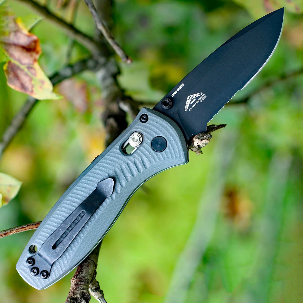Benchmade Mini Barrage G10 Folder 585SBK-2, 2.91 in. CPM-S30V Blade, Gray Handle, Black Combo Edge
