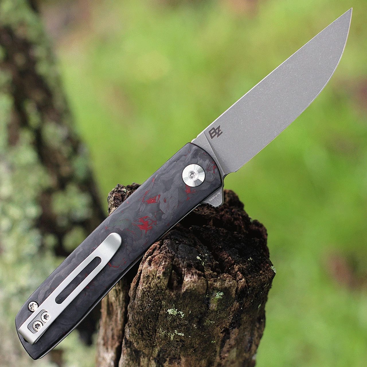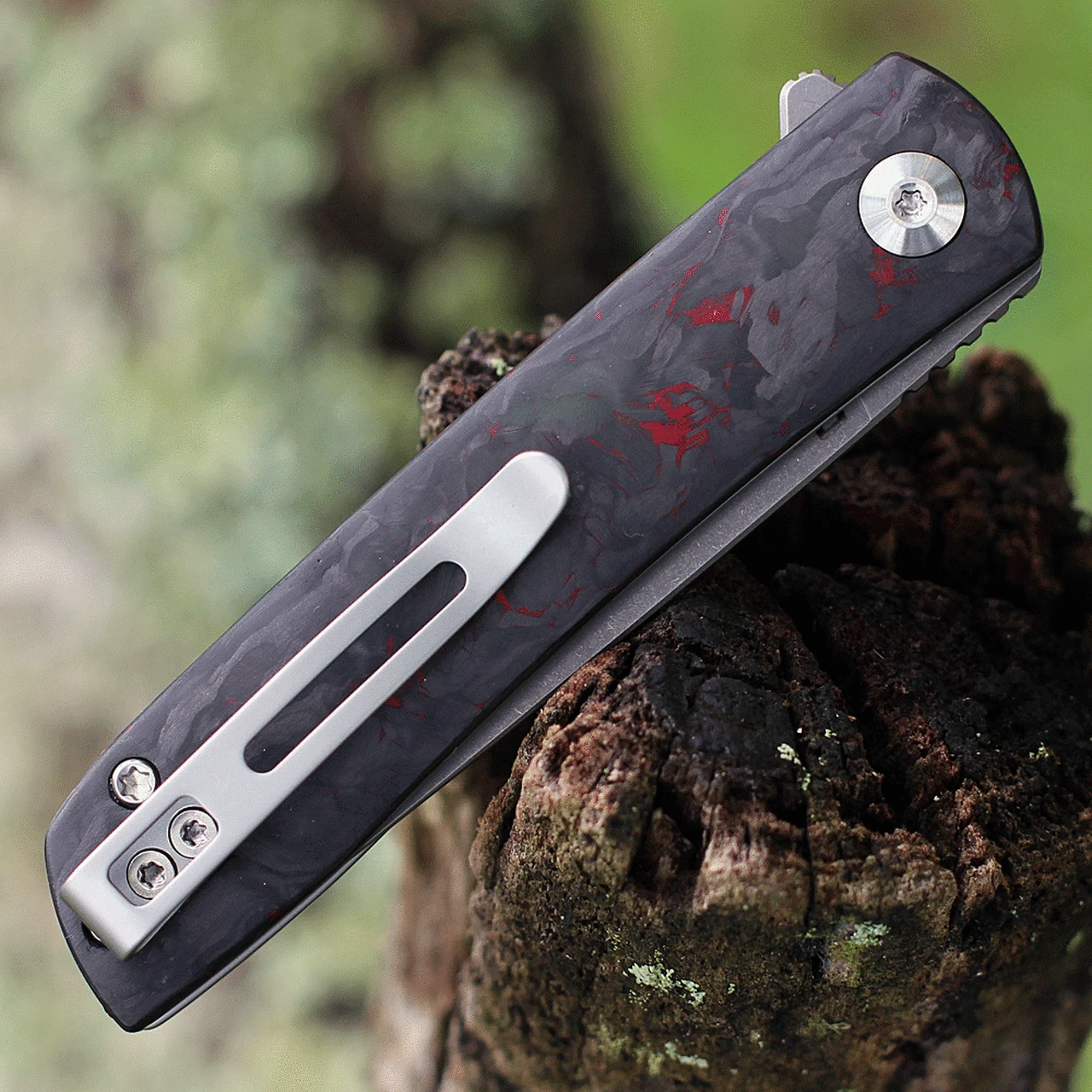 CIVIVI Bo Front Flipper (C20009B-B) – 2.92″ Nitro-V Gray Stonewashed Plain Blade, Red & Black Carbon Fiber Handles