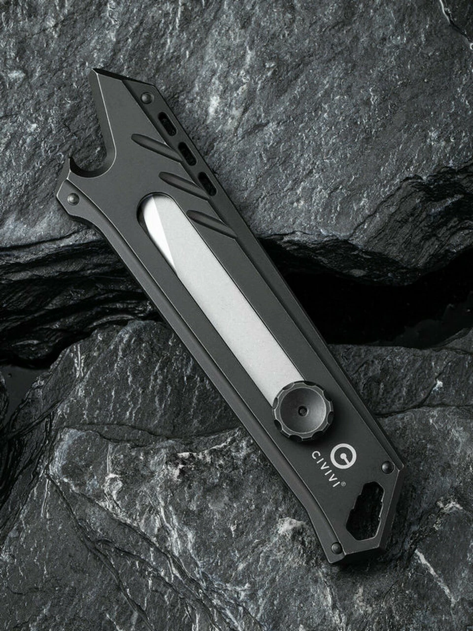 CIVIVI Mandate Utility Knife Black C2007D, 2.12″ 9Cr18MoV Stonewashed Blade, Titanium Handle