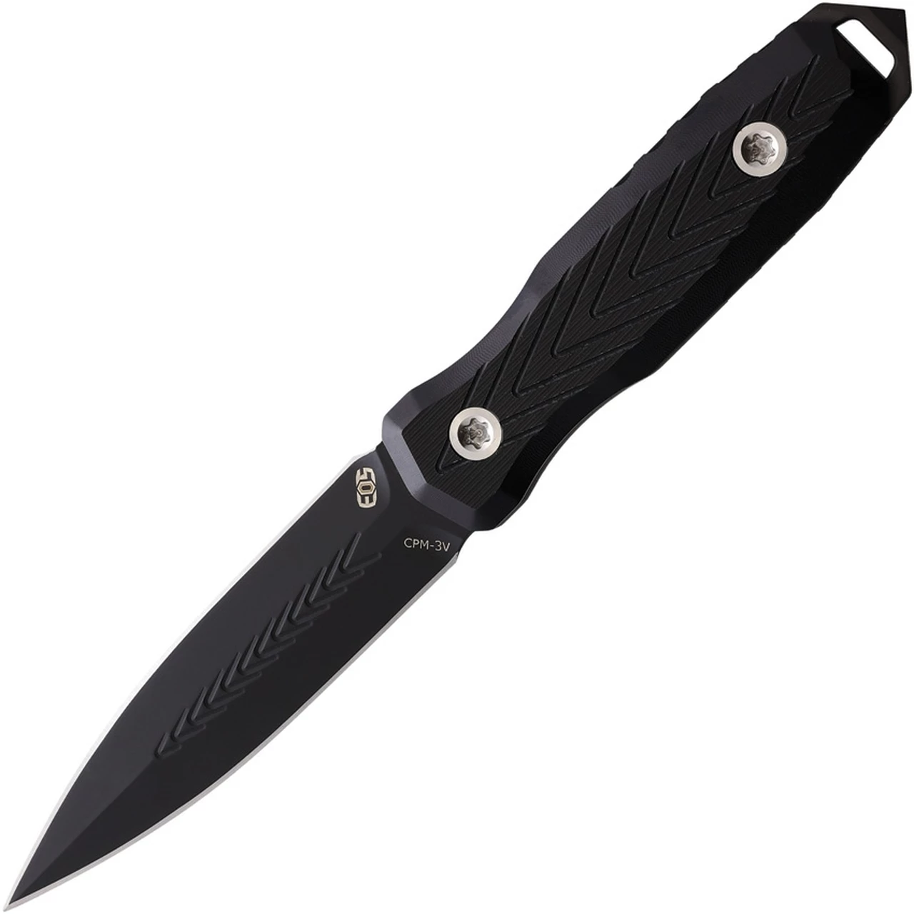 EOS Mini Thresher Blackout EOS099, 3.62″ CPM-3V Black Double Edged Dagger Blade, Black Aluminum Handles W/ Black Anodized Spike