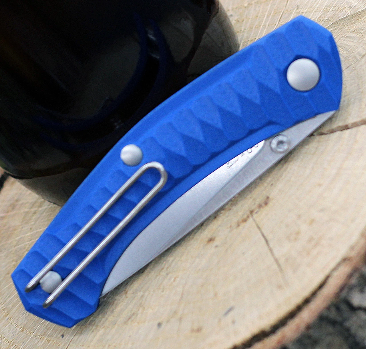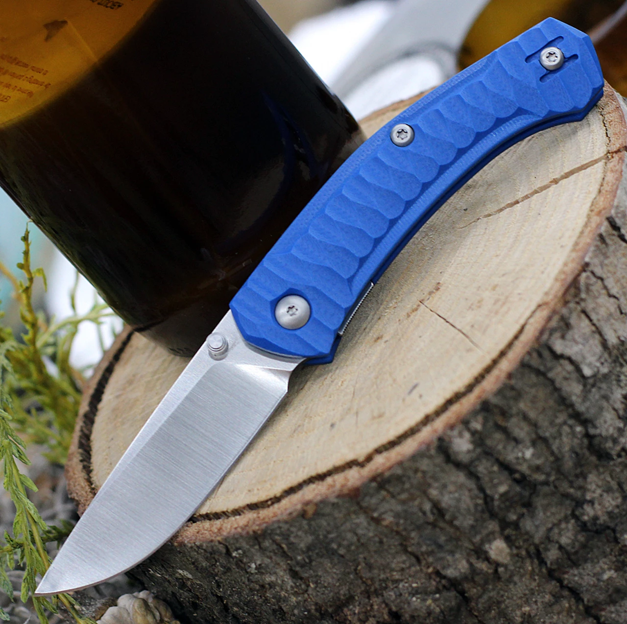 GiantMouse ACE Iona Liner Lock, 2.9″ Satin M390 Drop Point Blade, Anso Textured Blue G-10 Handle