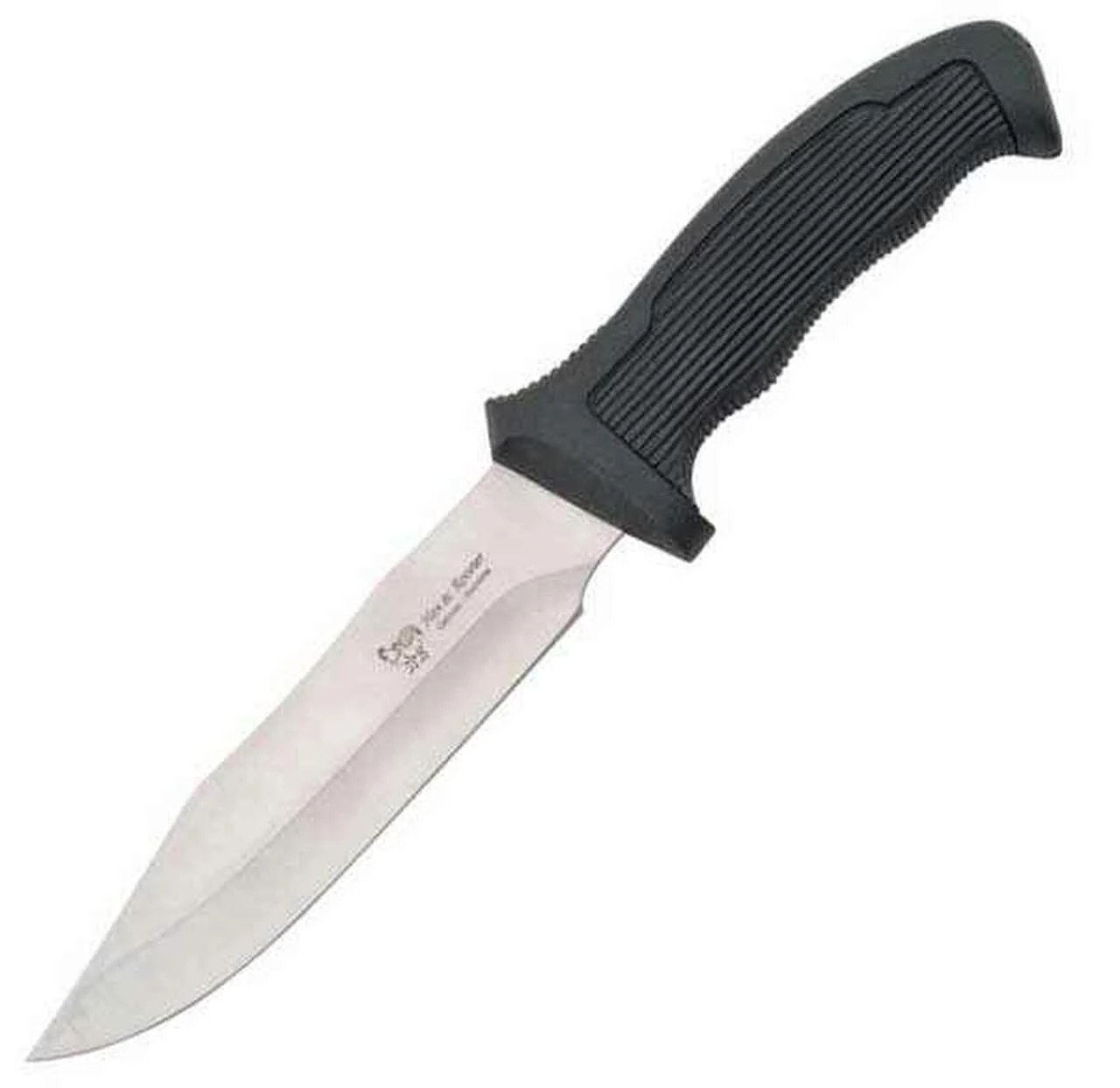 Hen & Rooster HR0009 Bowie, 6″ SS Plain Blade, Black Rubber Handle, Black Leather Sheath