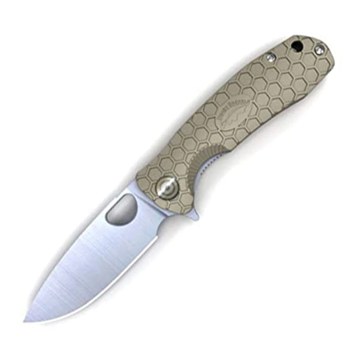 Honey Badger Knives Large Flipper HB1002, 3.63″ 8CR13MoV Satin Drop Point Plain Blade, Tan FRN Handle