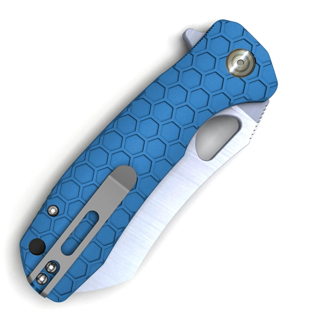 Honey Badger’s friction-less opening and closing action, facilitated by two opposing roller bearings containing a total of 18 ball bearings. Very few knives ever achieve such an immaculate action, and makes using them a real pleasure.